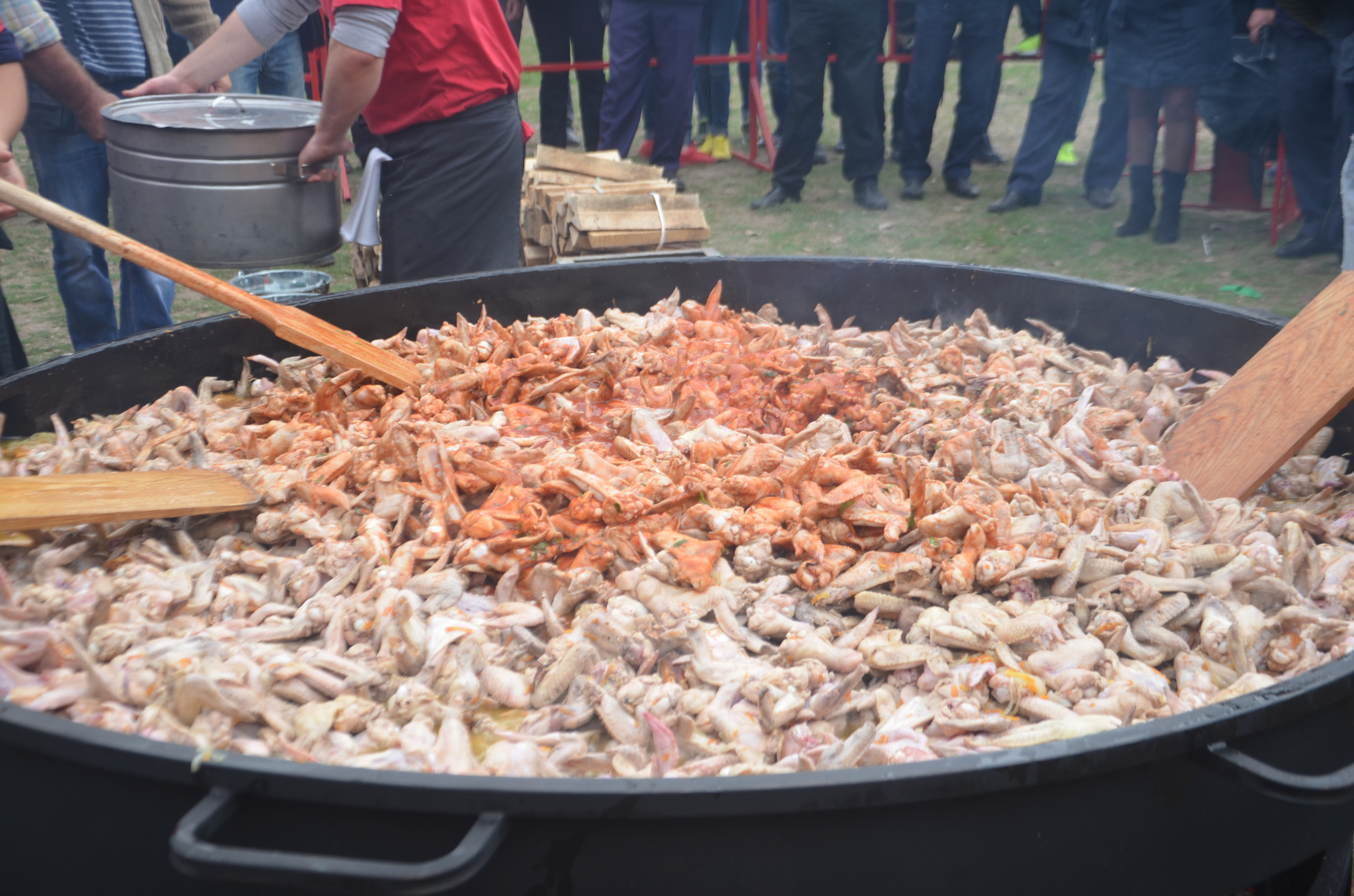 Во-первых, в этом году отказались от раздачи бесплатного торта ( который в прошлом году нелицеприятно прославил наш город на всю страну) в пользу… куриных крылышек. На одной сковороде диаметром 2,5 метров приготовили две с половиной тысячи крылышек и накормили ими голодных горожан. Организация и порядок раздачи были отработаны гораздо лучше. В центре находилась огромная сковорода, где жарилась птица. С двух сторон на нескольких противнях находились готовые крылышки, которые раздавали повара. Дикого ажиотажа среди запорожцев бесплатные лакомства не вызвали, все прошло без инцидентов. Возможно во многом благодаря тому, что этот процесс попытались сделать максимально тихим – не было «зазывал», не работали динамика и музыка и многие запорожцы просто проходили мимо в неведении того, что происходит. На всякий пожарный, правда, организаторы окружили импровизированную кухню двумя десятками полицейских.