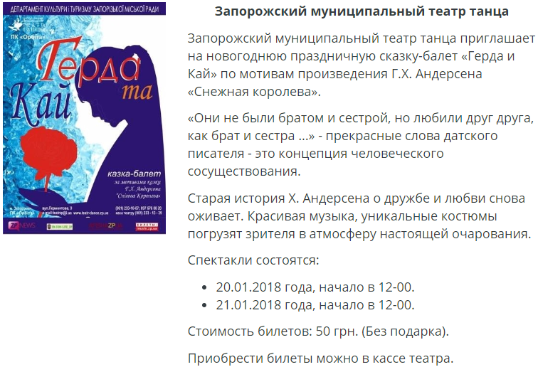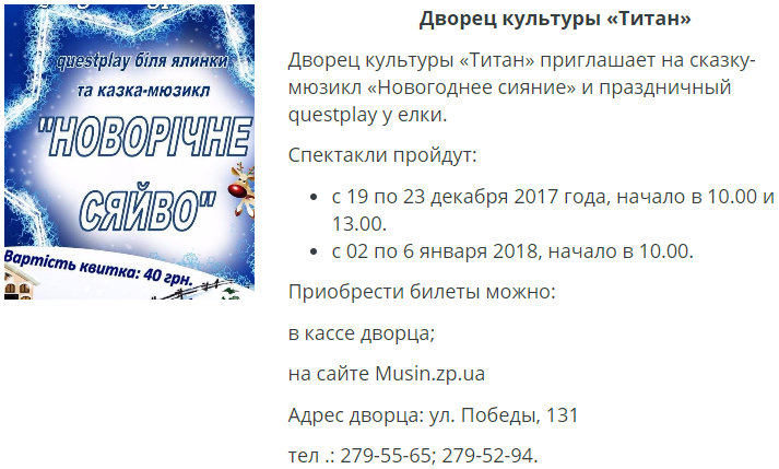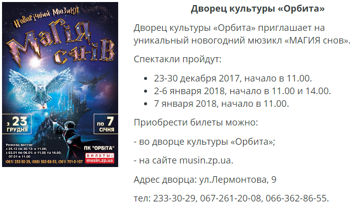 Запорожские муниципальные театры и дворцы культуры подготовили для горожан новогодние представления.