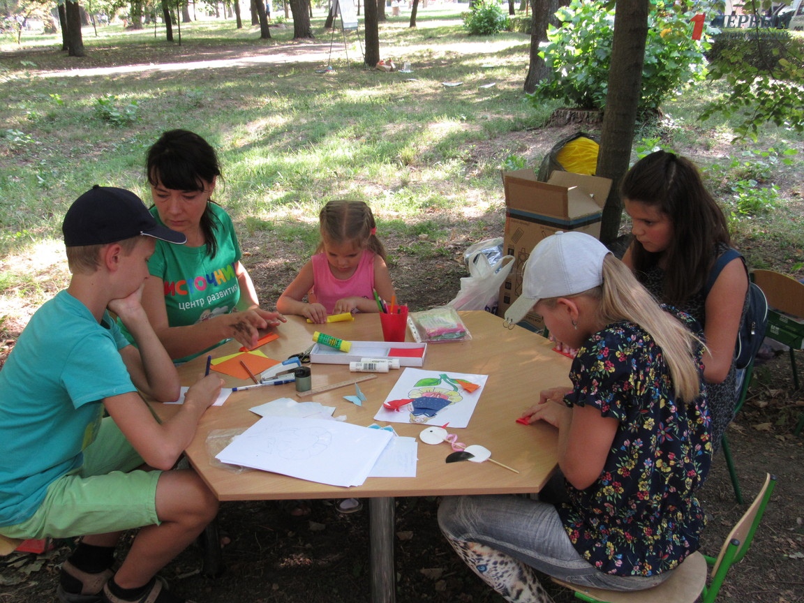 Больше всего развлечений организаторы подготовили для маленьких запорожцев. На главной поляне расположилось множество локаций с мастер-классами по декору пряников, изготовлению аксессуаров из бисера, фигурок из глины, поделки из соломы и многое другое. Также малыши играли с мультяшными персонажами, «крутили» лошадок из воздушных шаров, отдыхали в шалашах, разрисовывали большой домик из картона.