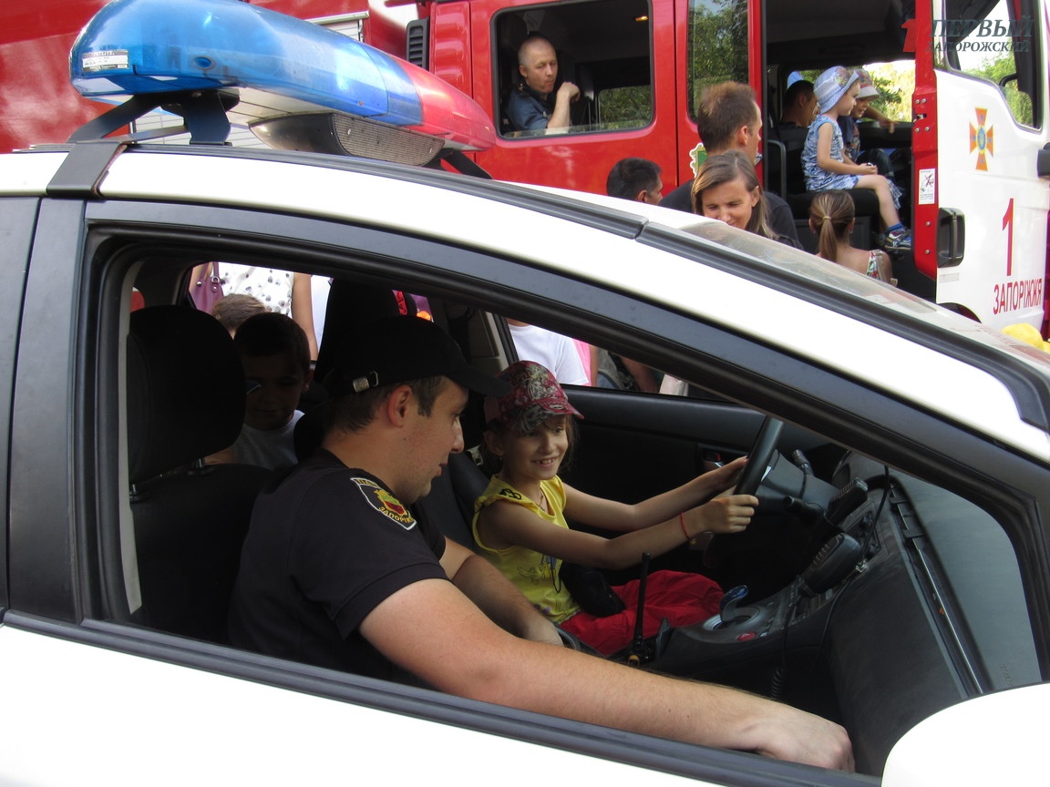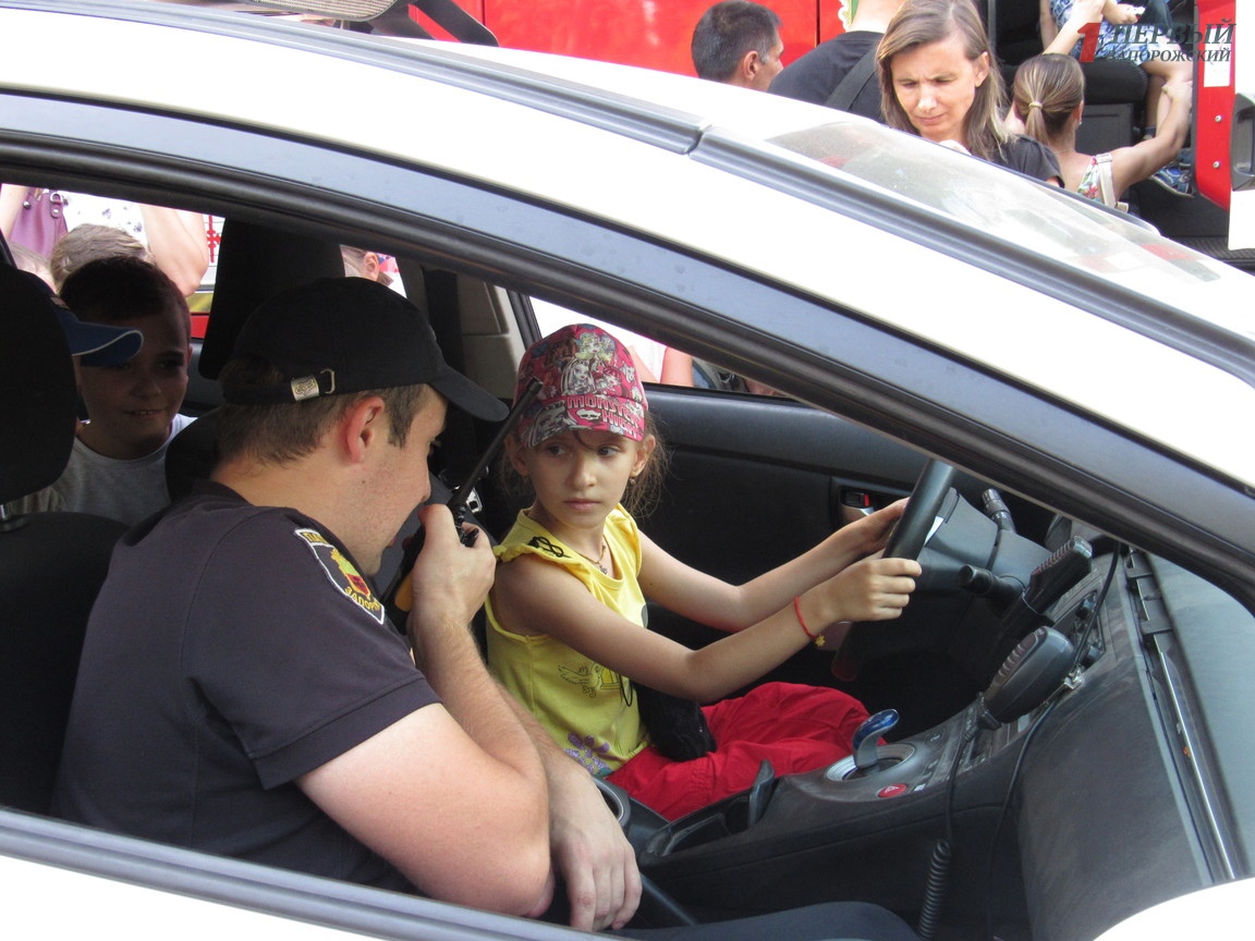 Кроме этого все детишки могли покататься с патрульными полицейскими на приусах и примерить защитную амуницию правоохранителей. Рядом спасатели проводили мастер-классы по правилам безопасности, показывали, как правильно одевать противогазы, пользоваться огнетушителями и разрешали малышам даже управлять пожарным автомобилем.