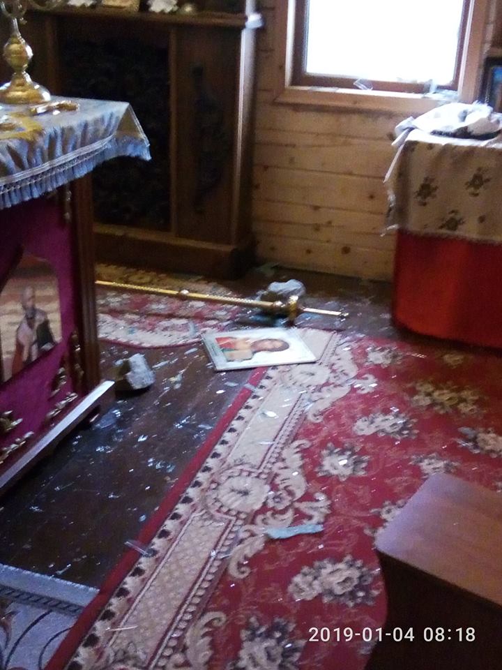 – В алтарной части, на полу, кроме разбитого стекла, которое было повсюду лежали иконы, переброшенные подсвечники, другая храмовая утварь. С полок были разбросаны вещи, а на престоле раскрыта Дароносица и высыпаны из нее частицы Тела Христова, приготовленного для причастия тежелобольных. Данный акт вандализма является оскорблением для духовенства и верующих, которые более десяти лет жертвуют средства, работают и благоустраивают это место, для всех, кто желает сюда прийти, – рассказал в сети Facebook настоятель храма отец Василий.