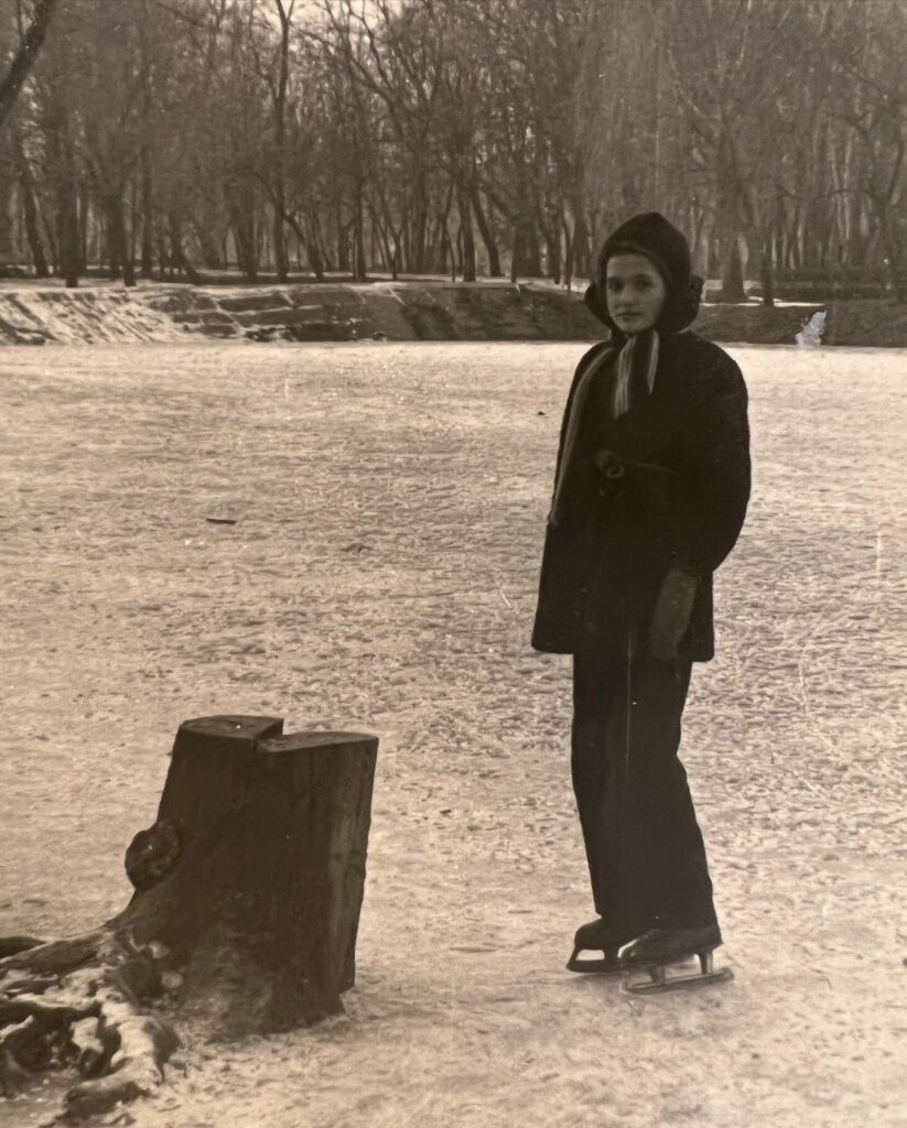 «Мої 14… Запоріжжя… Зимою тато сам заливавши ковзанку біля двору біля нашого дому і ми ганяли на простих, хлопчакових коньках… Як я тоді мріяла про фігурні…! Моє щасливе дитинство… Фото-В’ячеслава Сумського, мого тата!», – написала Ольга Сумська.