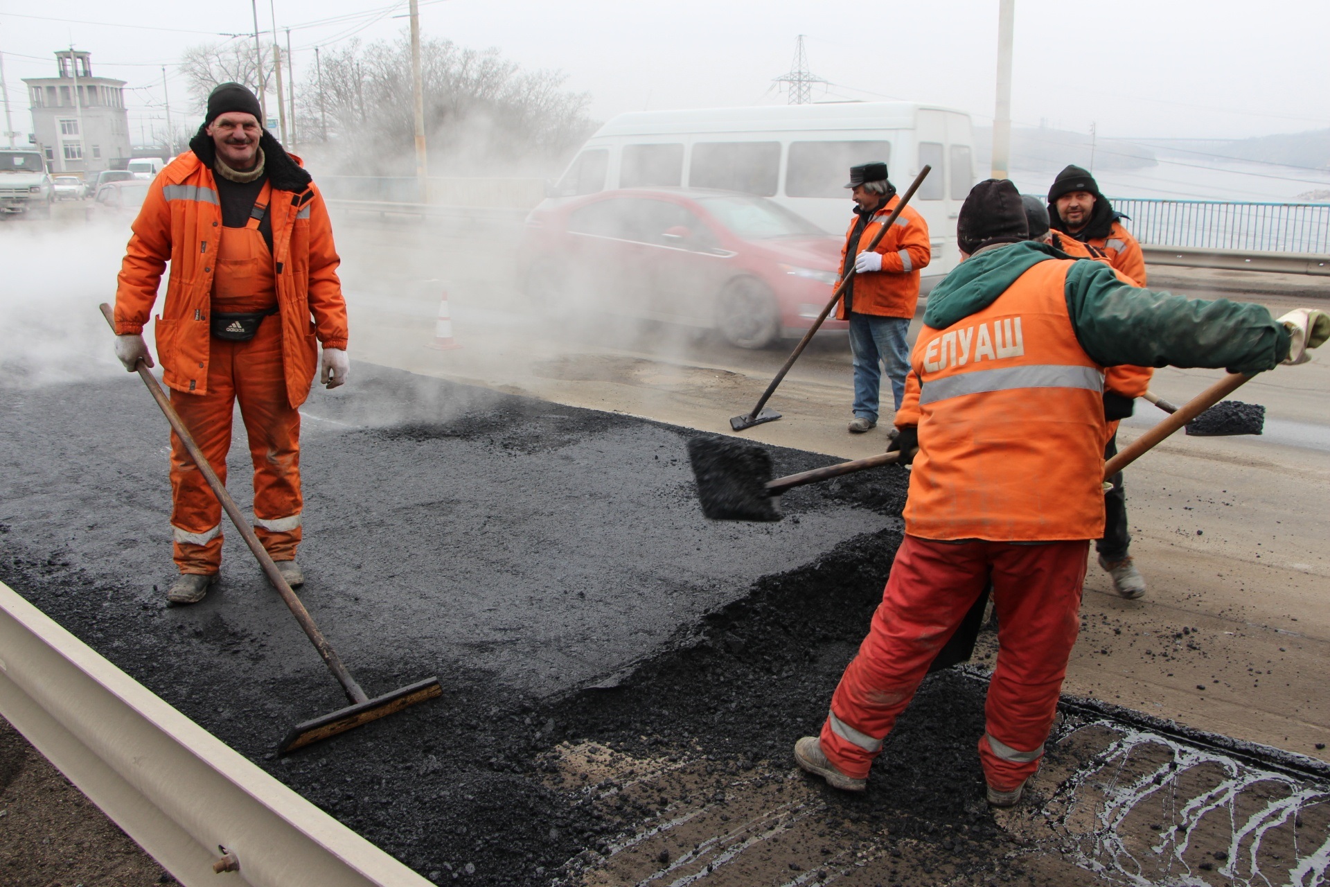 Ремонт дороги на плотине ДнепроГЭСа обещают закончить в кратчайшие сроки - ФОТО