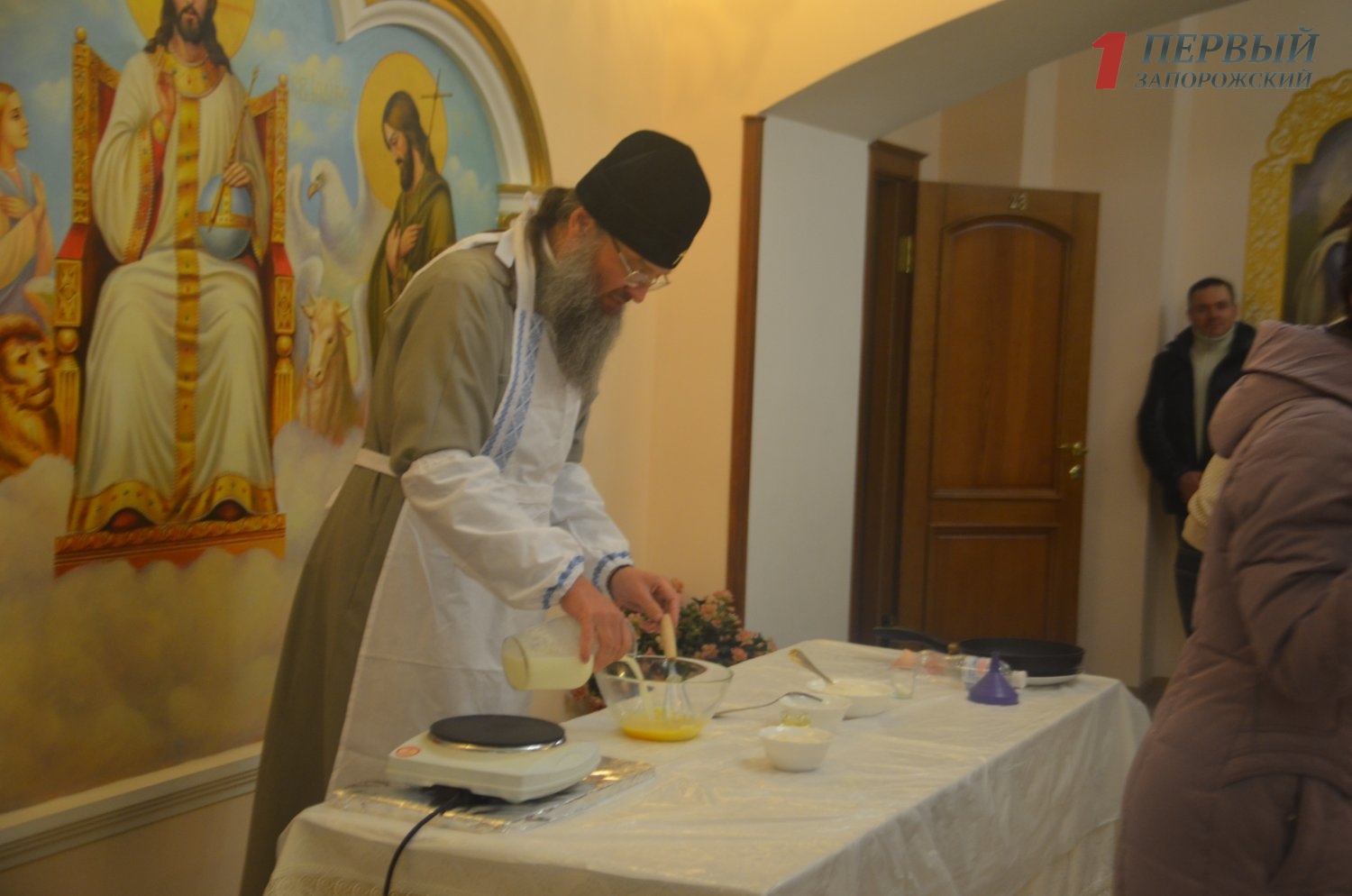Сегодня, 18 февраля, в Свято-Покровском кафедральном соборе для маленьких запорожцев митрополит Запорожский и Мелитопольский Лука провел мастер-класс по приготовлению блинов.