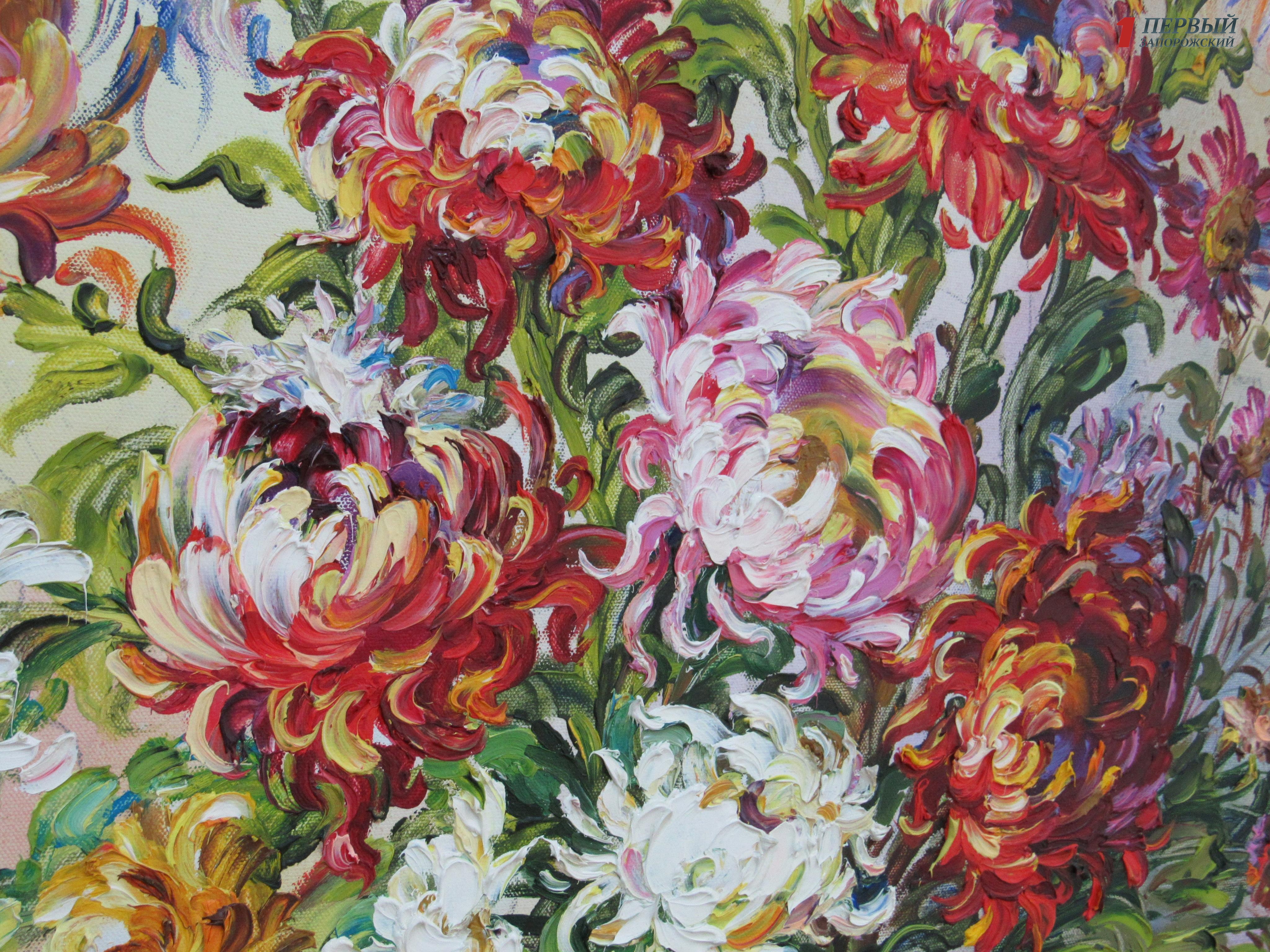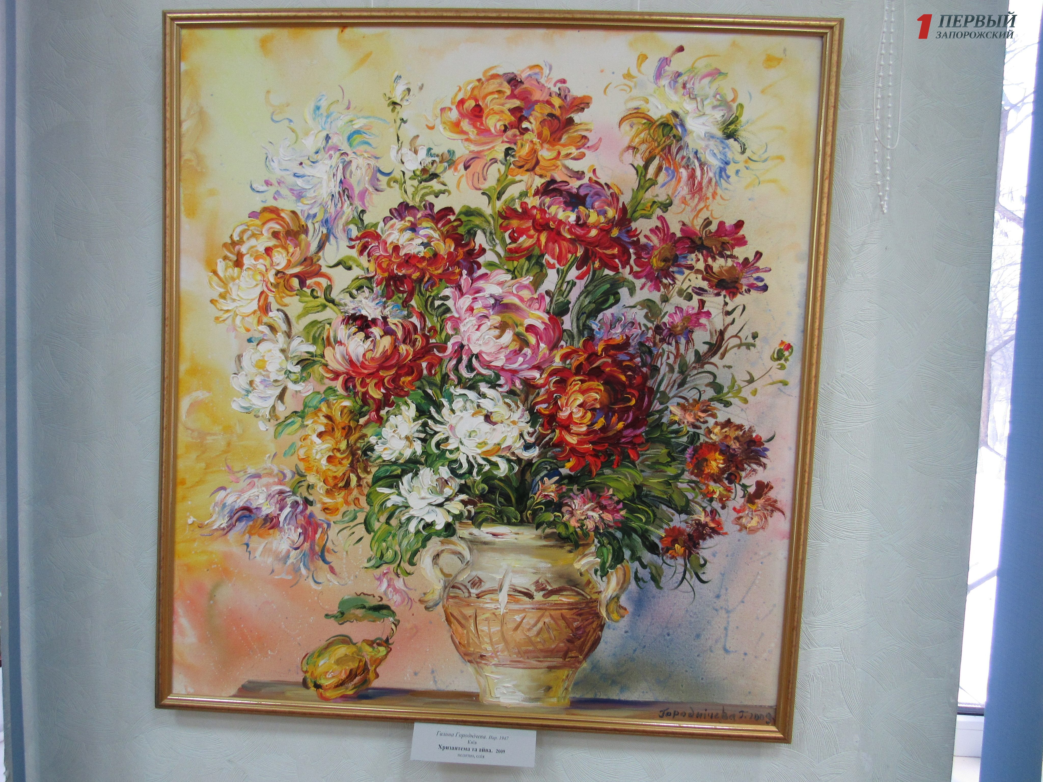 – Ни один праздник не обходится без цветов. На нашей выставке представлены натюрморты, на которых изображены исключительно цветы. Каждый художник по-разному подходил к этой теме. Здесь представлены работы запорожских, киевских, закарпатских художников и несколько работ художников ближнего зарубежья. Работы выполнены в самых разнообразных стилях, в общем представлено 29 работ художников, – рассказала Инга Янкович.