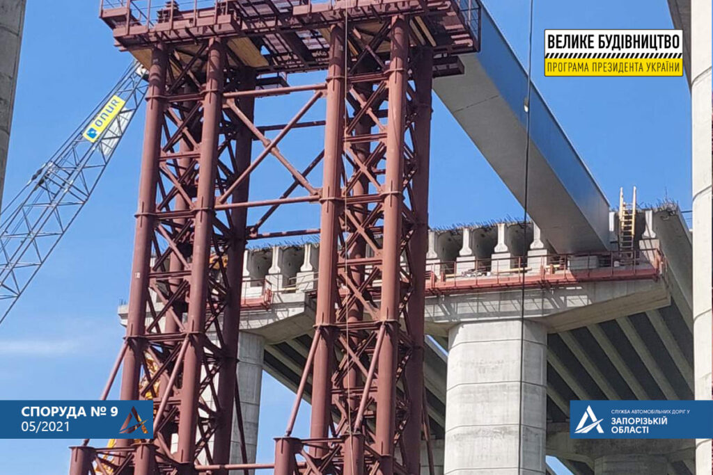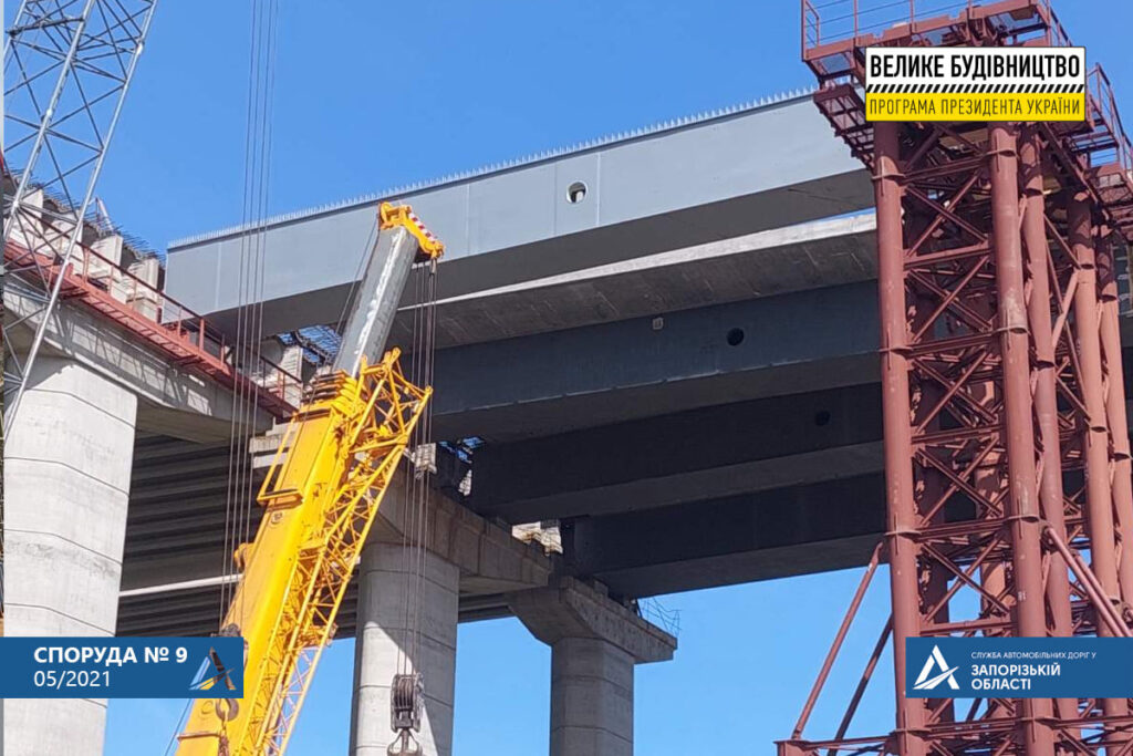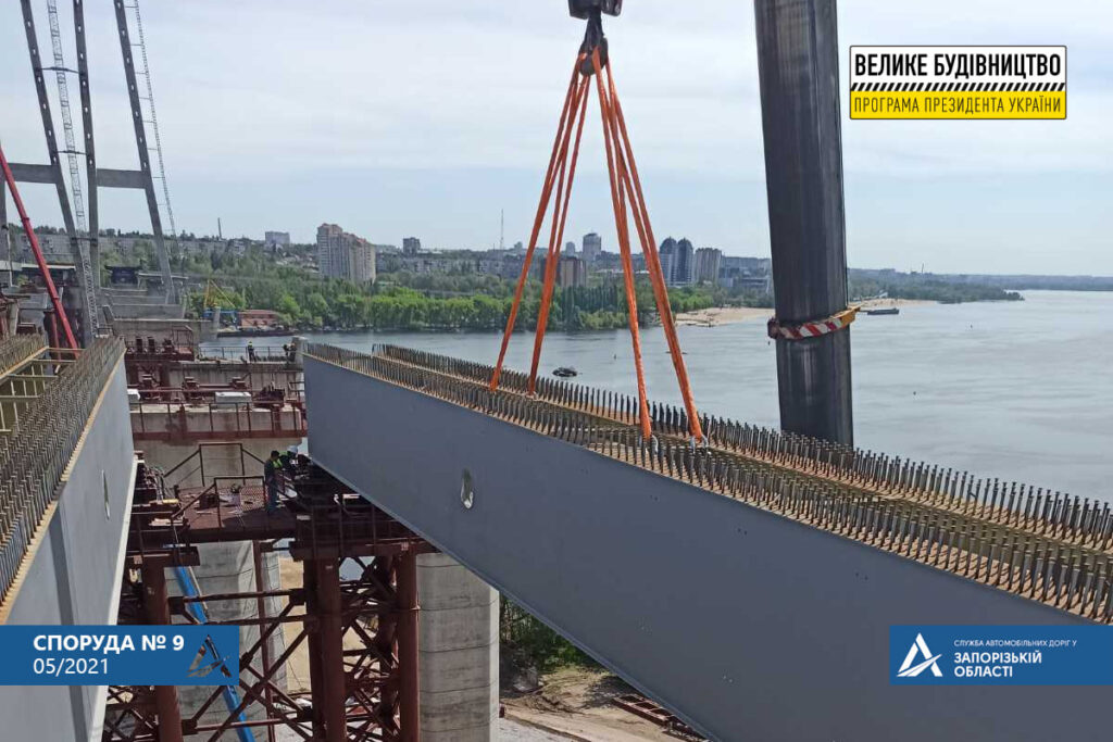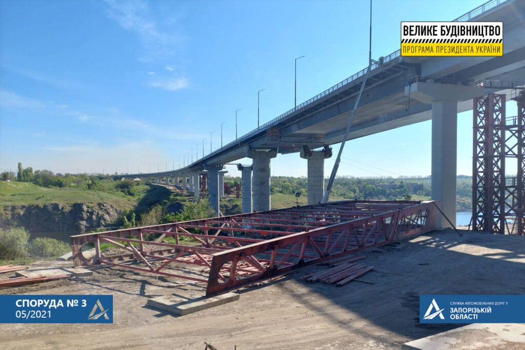 На естакаді, що над кільцем на острові Хортиця (споруда № 6н), підрядники вже виконали монтаж 10 залізобетонних балок прогонової будови в прогоні 2-3, та 10 балок в прогоні 3-4. Обидві довжиною по 33 метрів.