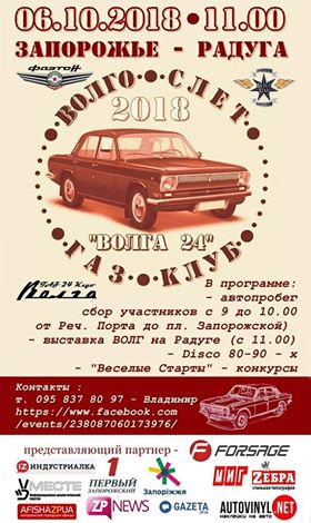 В субботу, 6 октября, в Запорожье состоится ежегодный массовый слет автомобилей «Волга» именуемый «ВОЛГО СЛЕТ 2018». Об этом сообщают организаторы события – Запорожский ГАЗ Клуб «ВОЛГА 24».