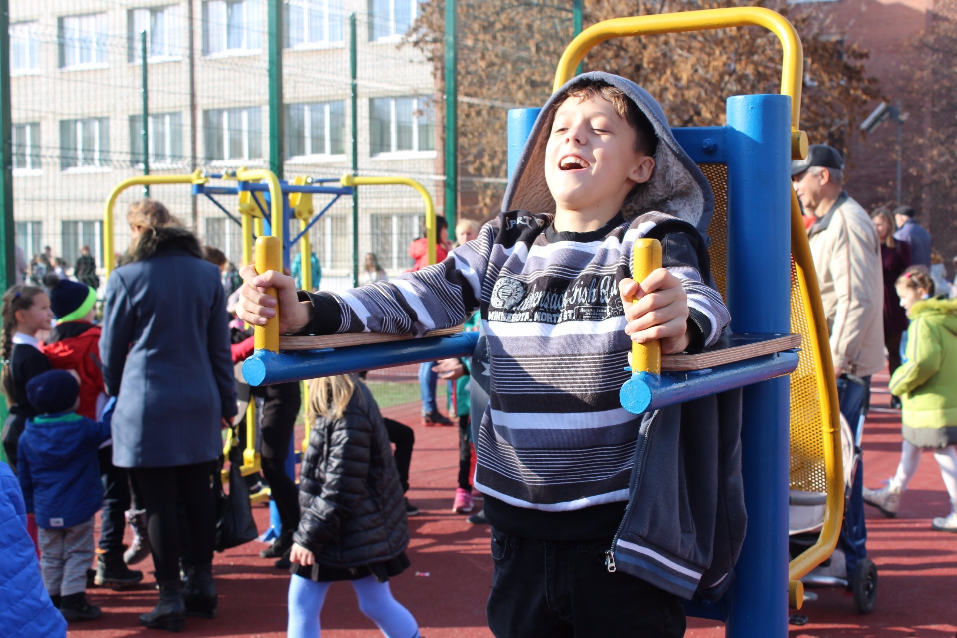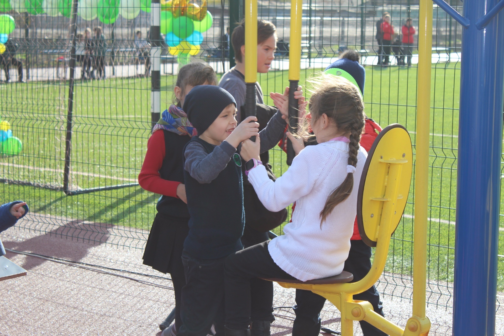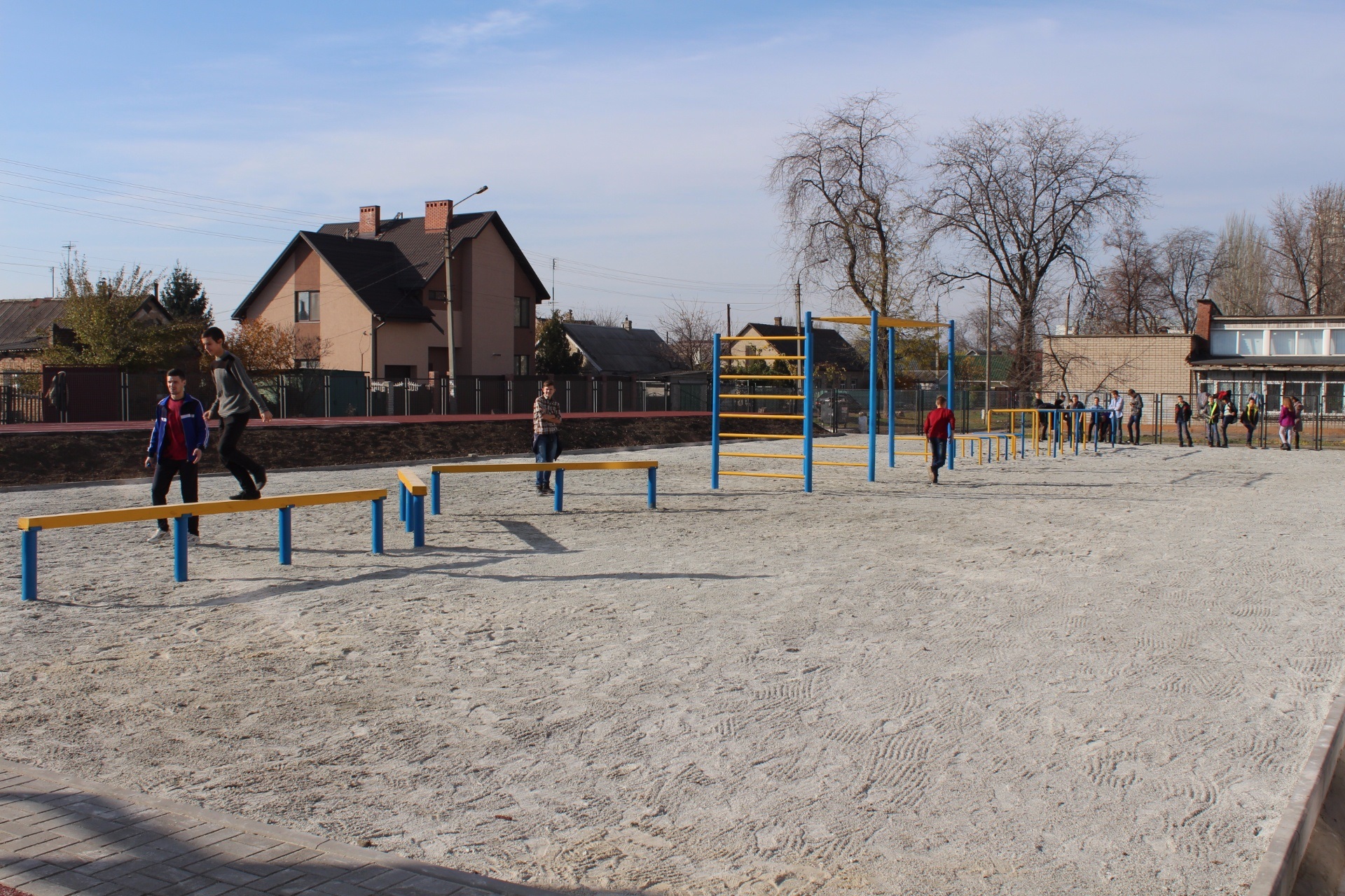 – Здесь есть тренажеры, гимнастическая площадка, футбольное, баскетбольное, волейбольное поля. Кроме того, учащиеся группы продленного дня и начальных классов смогут играть в детском городке. Особенность стадиона – полоса препятствий для проведения занятий по довоенной подготовке, – рассказал Сергей Доновский.