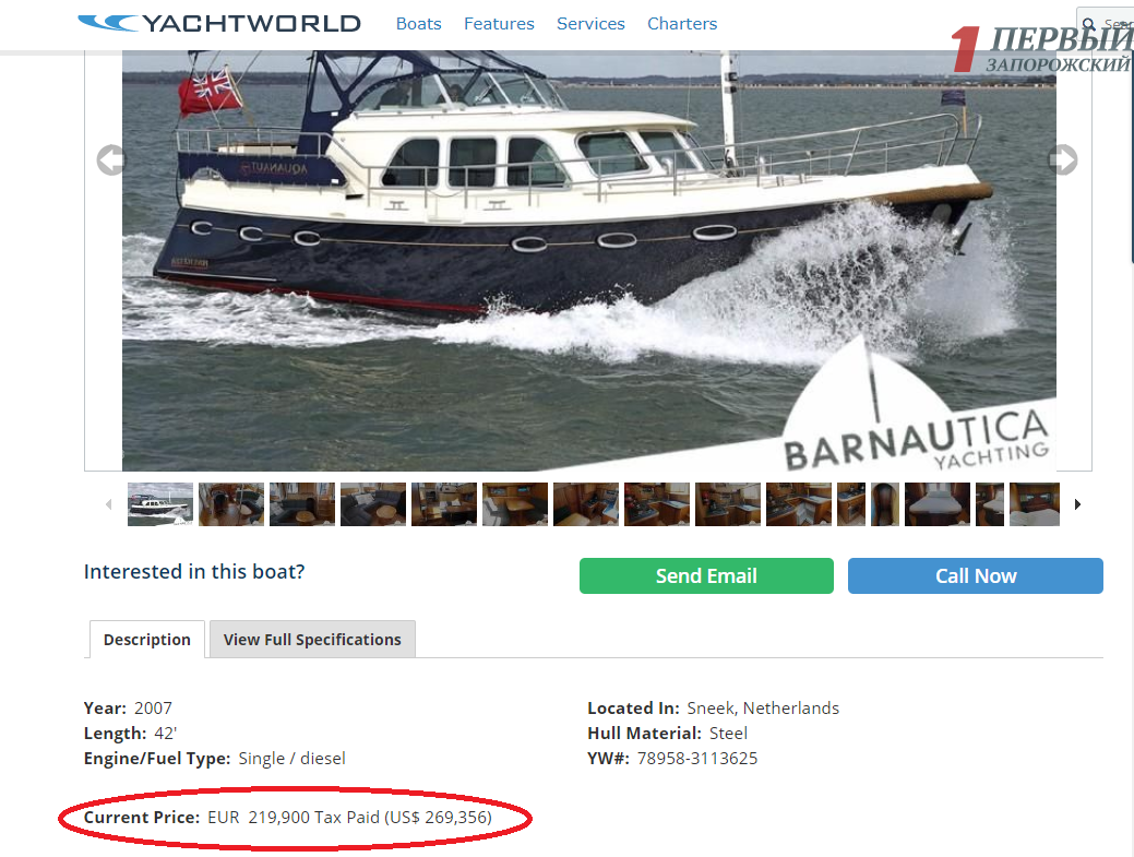 При этом на интернет-сайтах яхта такой модели 2007 года выпуска стоит не менее 200 тысяч евро.