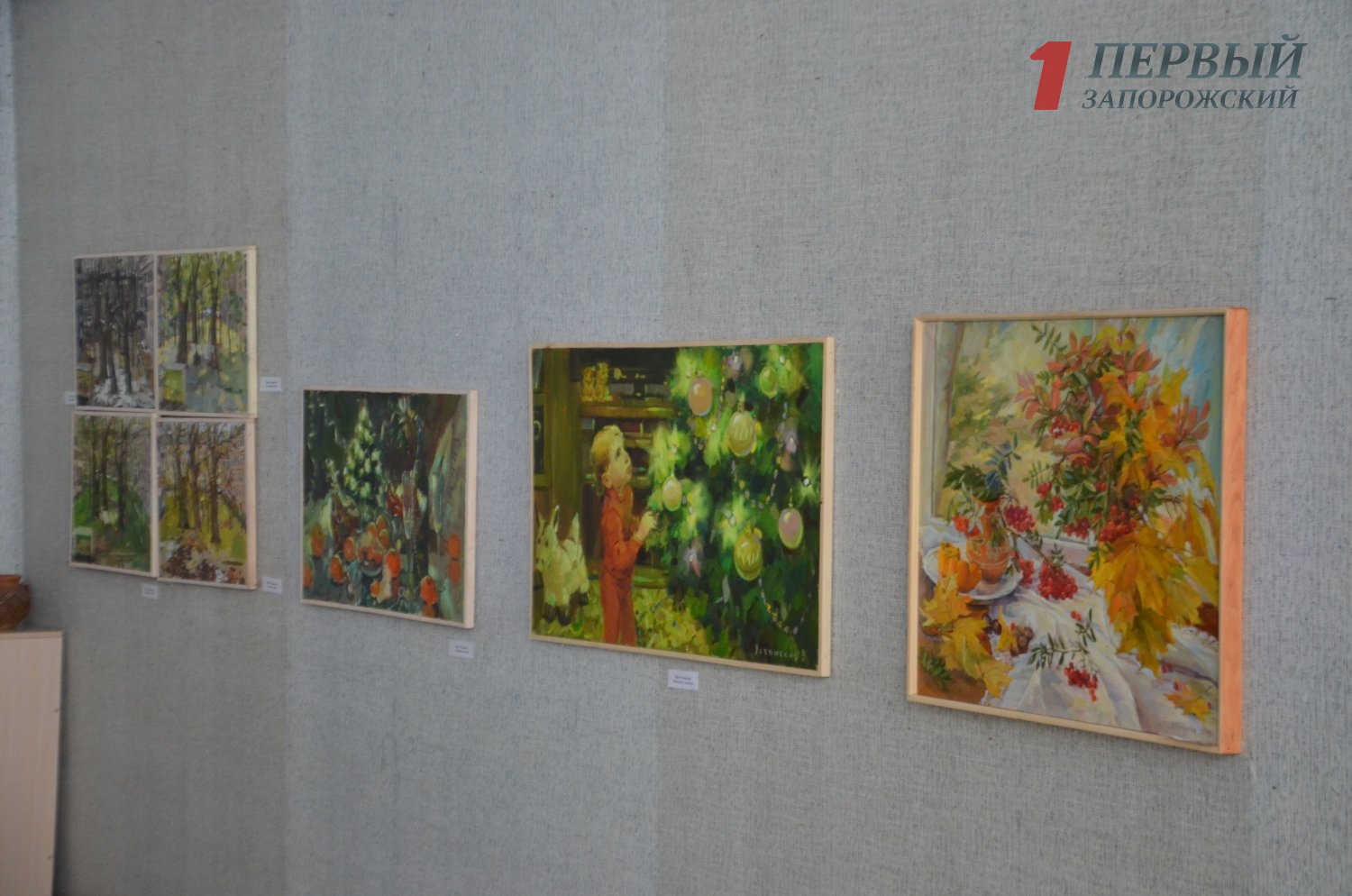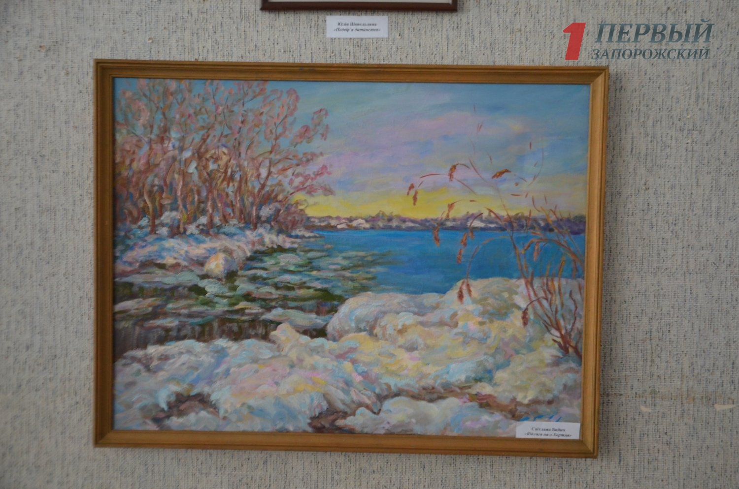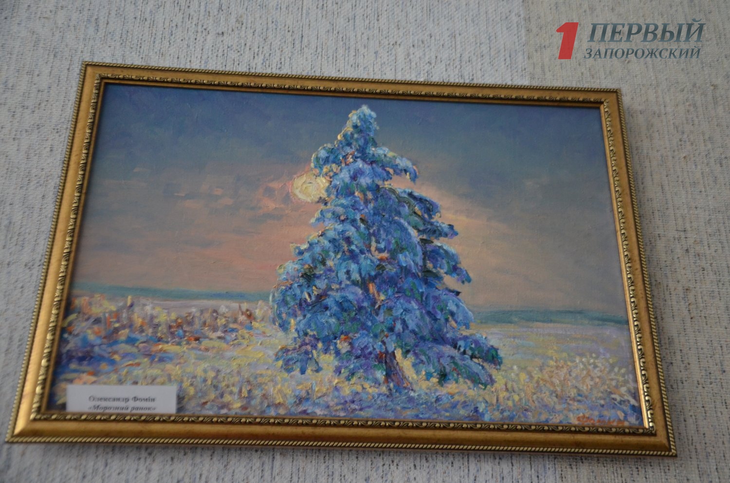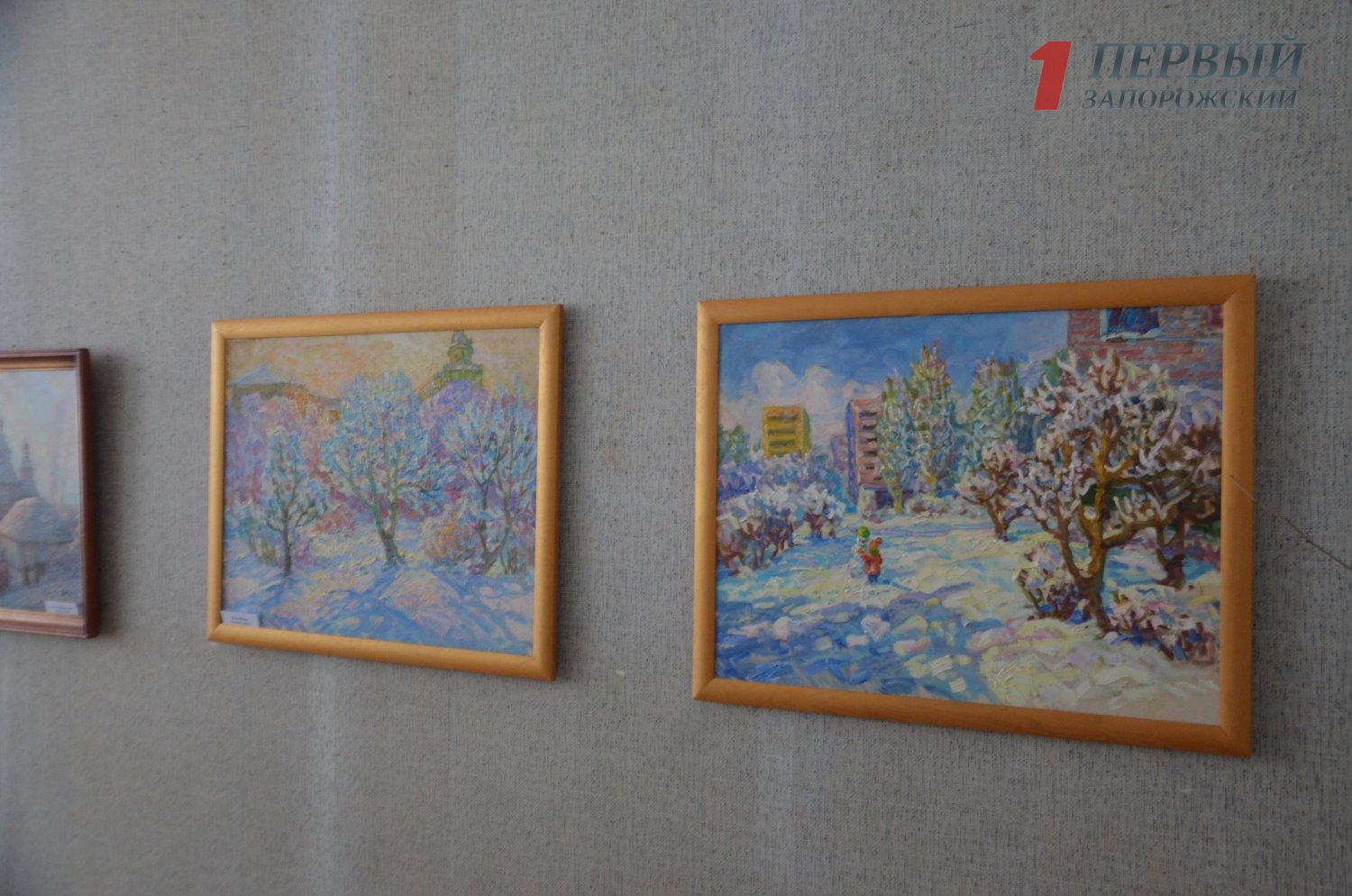 В экспозиции представлено более 120 работ запорожских, бердянских и мелитопольских художников. Это различные зимние пейзажи, натюрморты, портреты. Также на выставке можно увидеть необычных снеговиков ручной работы и елку из веток с эксклюзивными игрушками.