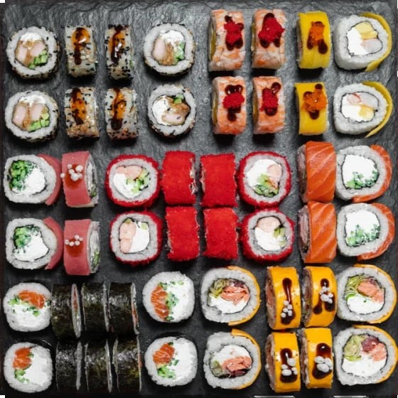 Розглянемо варіант святкового меню без перших страв. У такому разі найпопулярнішим вибором стає кілька різновидів піци та сетів. Якщо передбачається, що до вас має прийти багато гостей, тоді варто звернути увагу на великі сети. Наприклад, це можуть бути сети «Фанкі» і «Філадельфія» в розмірі XXL (1400 і 1300 грамів відповідно). А ще хорошим вибором буде фірмовий сет «Рок-н-Рол». Він узагалі важить 2500 грамів і є найбільшим у меню мережі Рок-н-Ролл. Щодо піци, то краще взяти кілька видів – як на червоному, так і на білому соусі. Також піцу можна скласти самостійно за допомогою опції конструктора. Головне – правильно підібрати інгредієнти, використовуючи не більше 8 складових для начинки. Цього правила дуже важливо дотримуватися, щоб одні складові начинки не перебивали інші.
