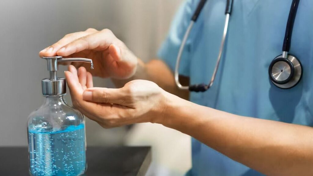 - Сухе миття рук, яке медичні працівники можуть робити між різними процедурами чи пацієнтами.