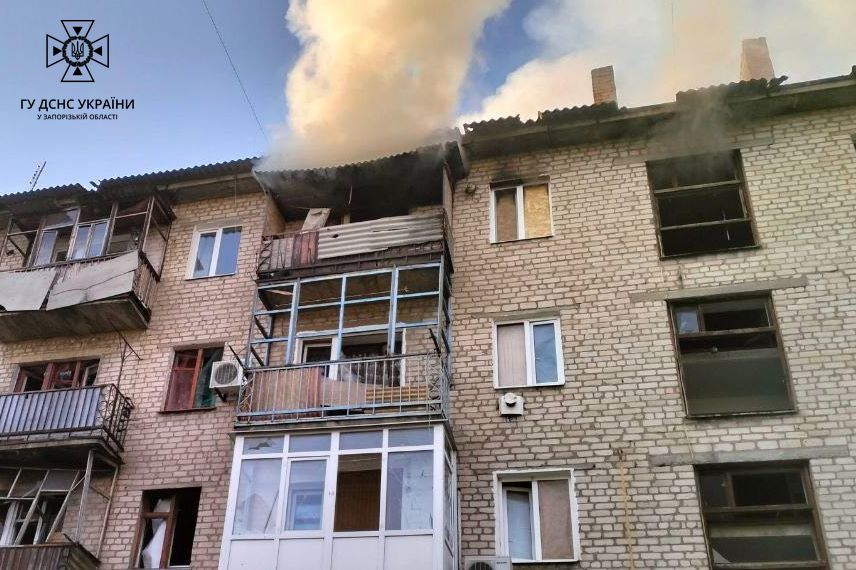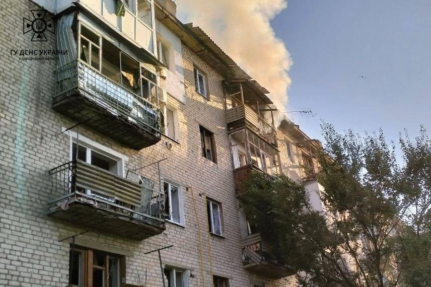 Армія РФ обстріляла Оріхів: загорілася п’ятиповерхівка, — ФОТО