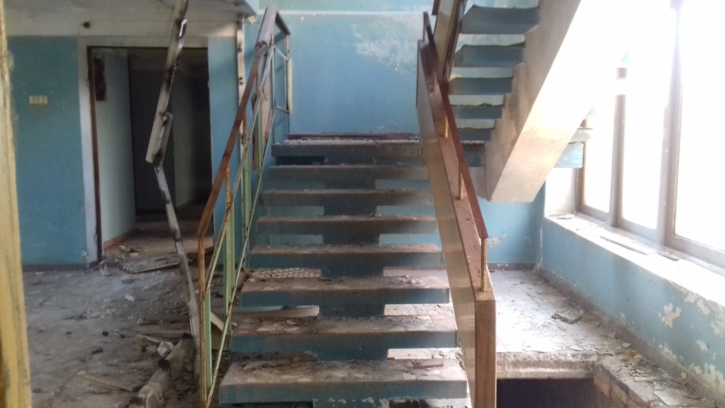 Территория находится в очень запущенном состоянии, три года на ней никто не убирал. Во всех зданиях биты окна, нет проводов, протекают крыши.