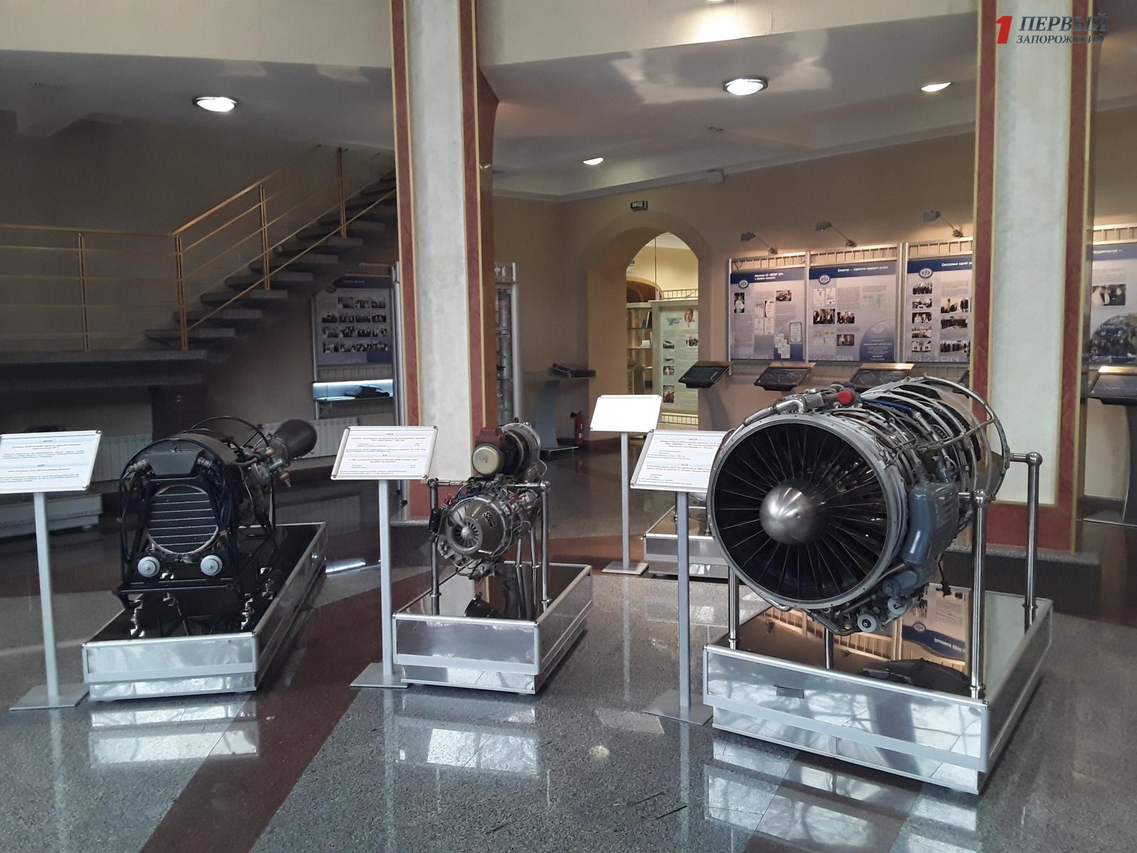 На первом этаже Музея техники представлены поршневые и реактивные авиационные двигатели. Особое внимание посетителей привлекает огромный турбореактивный двухконтурный двигатель “Д-18Т” для самолетов «АН-124 «Руслан» и «Ан-225 «Мрiя».