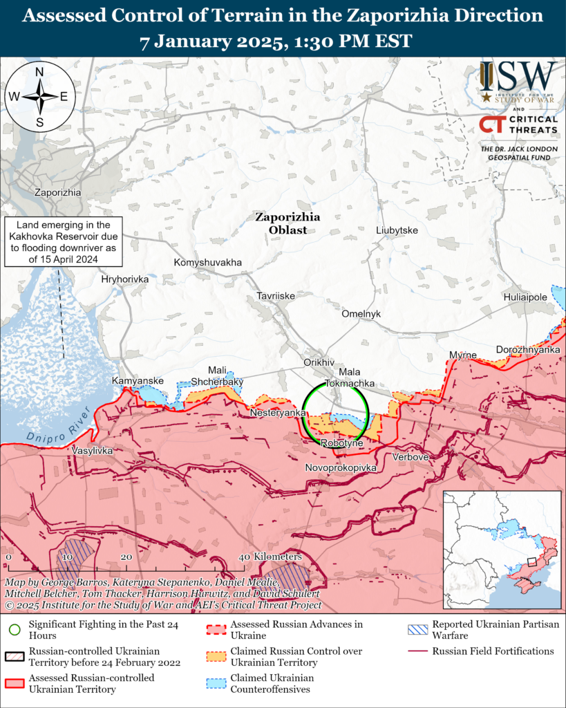Війська РФ 7 січня продовжували наступальні дії в західній частині Запорізької області.