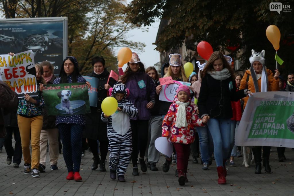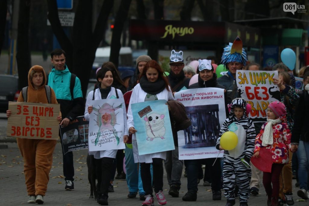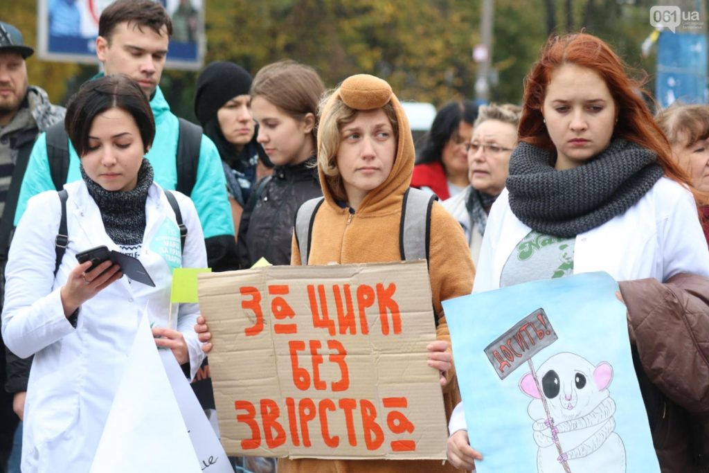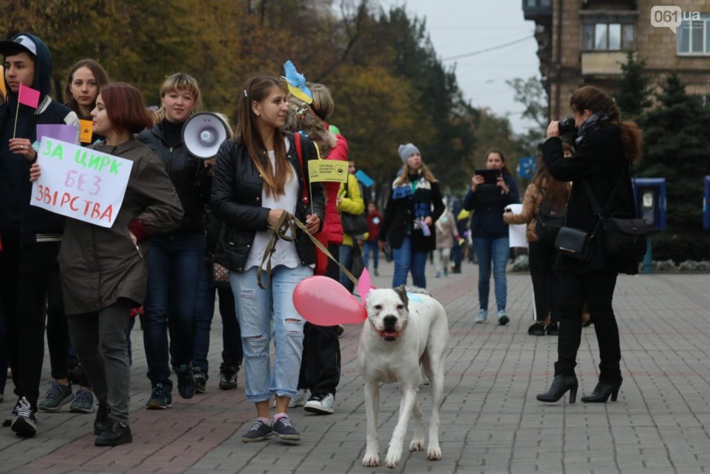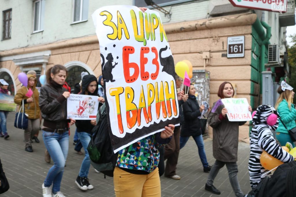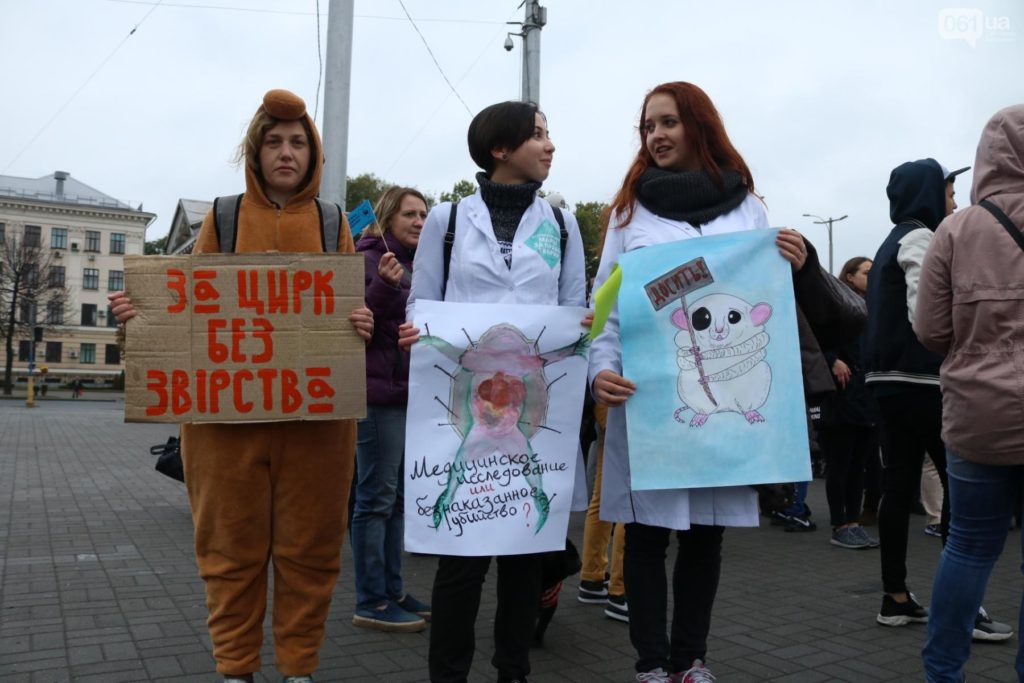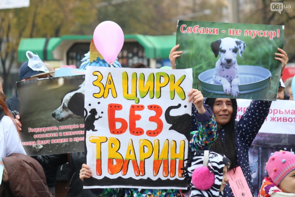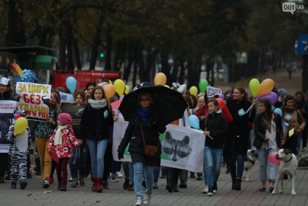 Активисты прошлись с плакатами “Запорожье без жестокости”, “За цирк без животных” и лозунгами от площади Фестивальной до бульвара Шевченка. По словам активистов главная цель марша – привлечь внимание запорожцев на жестокое обращение с животными в цирках и сфере развлечений, призвать власть внедрить действенные механизмы борьбы с живодерами и садистами, а также обратить внимание запорожцев на гуманное отношение к животным.
