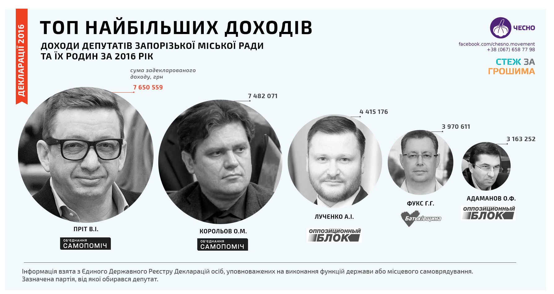 Впервые в этом году благодаря е-декларированию общественность получила доступ к доходам запорожских избранников. Депутатские кресла одновременно занимают, как миллионеры с внушительным бизнесменом, так и люди безработные и без гроша в кармане. Общественное движение «Честно» назвало имена самых богатых и бедных депутатов городского совета.