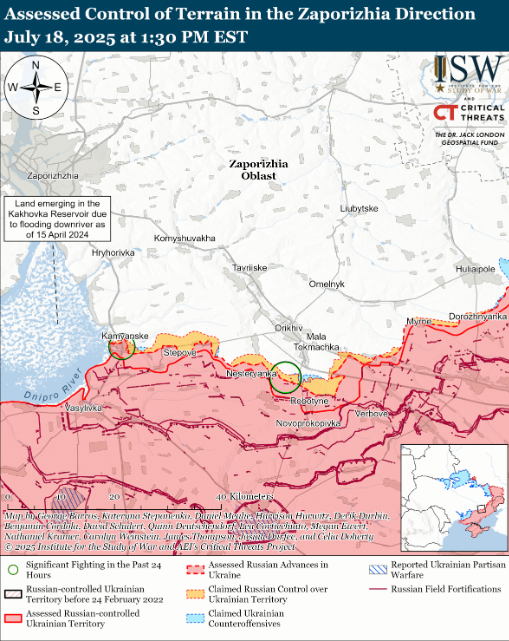 17 та 18 липня війська РФ атакували на південний схід від Оріхова поблизу Малої Токмачки та на південний захід від Оріхова поблизу Кам’янського.