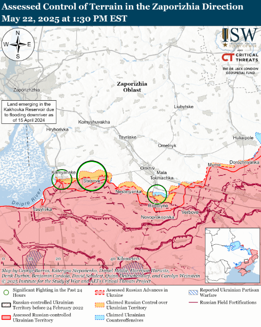 22 травня російські війська продовжували наступальні операції на запорізькому напрямку, але не просунулися.