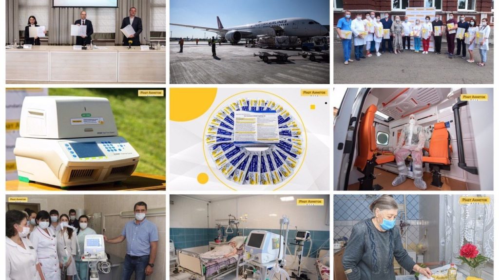 Фонд працює в тісній координації з Міністерством охорони здоров’я України, регіональними антикризовими штабами боротьби з коронавірусом і допомагає державним лікарням найнеобхіднішим. Устаткування, експрес-тести, засоби індивідуального захисту передаються медикам в рамках проєкту «Боротьба з COVID-19 в Україні», який став частиною великої програми «Рінат Ахметов – Порятунок життів».
