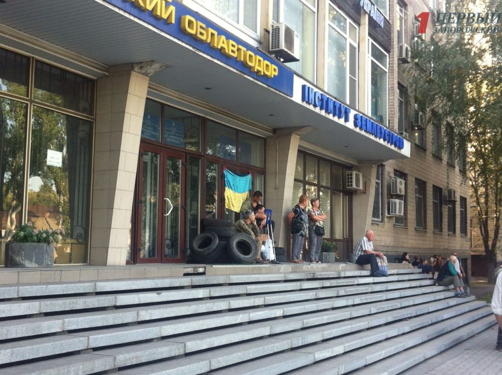 Военнослужащие заявляют, что им приходится идти на крайние меры и блокировать вход в здание, потому что чиновники из ГУ Госгеокадастра в Запорожской области отказываются их слышать и выполнять законные требования по предоставлению военнослужащим по два гектара земли для ведения сельского хозяйства.