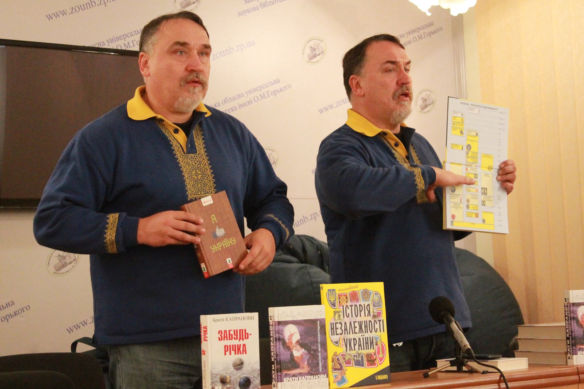 Сегодня, 19 октября, в Запорожской областной библиотеке писатели братья Капрановы презентовали новый роман «Забудь – річка», а заодно представили публике ранее изданные книги.