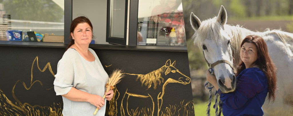 Жителька Запоріжжя Ніна Ковалів багато років працювала бухгалтеркою на різних підприємствах. Врятувавши одного коня від забою, під час повномасштабного вторгнення вона взялася вивозити тварин із прифронтових територій. У селі Нагірне, що під Запоріжжям, Ніна створила іпоцентр – унікальний простір для відновлення, психологічної підтримки та відпочинку серед коней і природи. Грантові програми допомогли їй облаштувати та розвинути це місце.