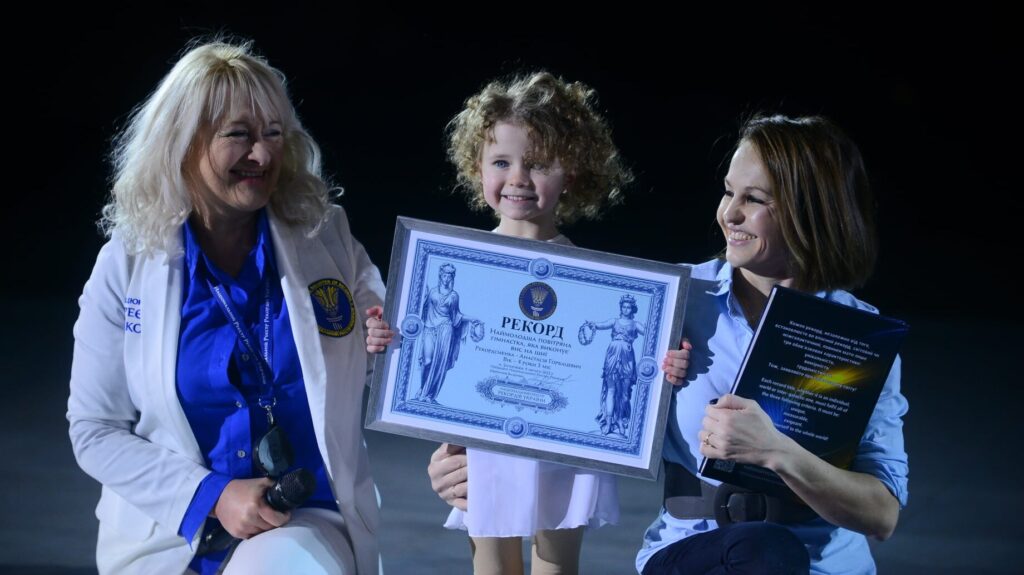 Рекрод України встановила чотирирічна Настя Горбацевич, яка виконала трюк під назвою “вис на шиї без страховки”.