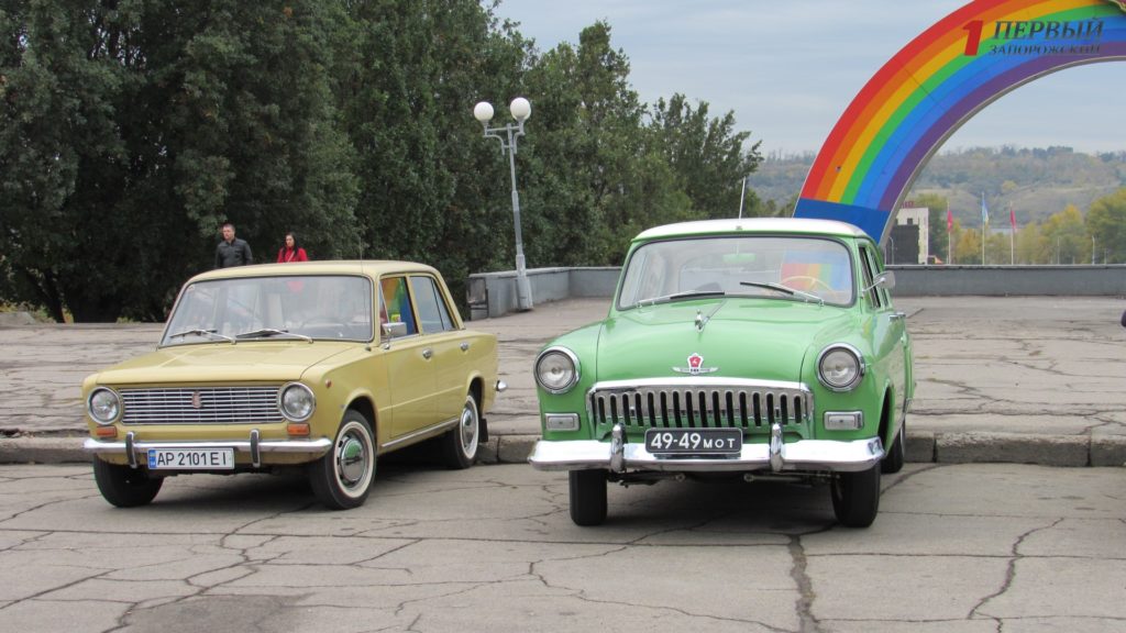 Автолюбители традиционно собрались с утра возле каскада фонтанов «Радуга»: здесь можно было рассмотреть модели советского автопрома: автомобили Волга, Жигули, Москвич. А также – знаменитый экспонат запорожских автомобильных выставок, уникальный BMW Phantom, созданный Сергеем Назаренко по авторскому эскизу на основе BMW 340 1938 года выпуска.