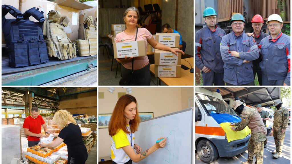 Так, Метінвест передав 1000 комплектів амуніції спецпризначення на суму 2,5 млн доларів, що складаються з легких бронежилетів з керамічними плитами, касок і тепловізорів, Головному управлінню розвідки Міністерства оборони України. Додатково розвідники отримали ще 120 тепловізоров на суму 15 млн грн. Сухопутним військам передано понад 60 дронів і 50 комплектів приладів нічного бачення та спецкасок загальною вартістю 10 млн грн. «Запоріжсталь» щотижня передає сотні й тисячі бронежилетів нашим оборонцям. А нещодавно «Метінвест» розпочав безоплатно надавати бронепластини військовим – необхідно лише звернутися з офіційним запитом. Не забуваємо і про фортифікацію – більше половини протитанкових їжаків в Україні виготовлені з металу Метінвест-СМЦ.