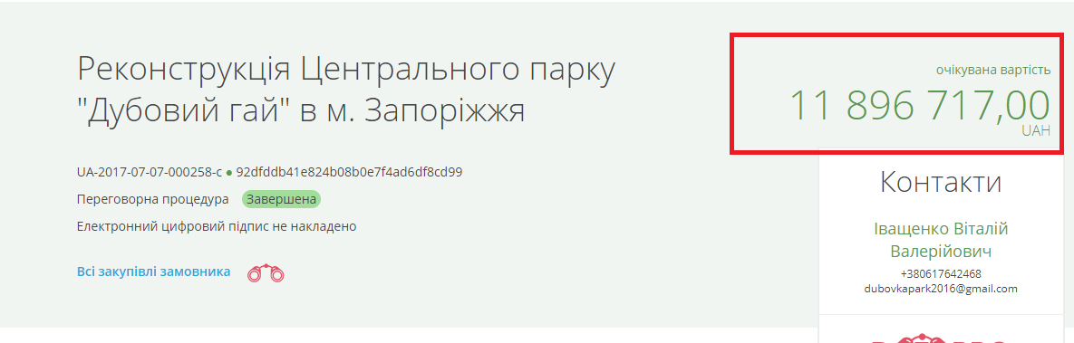 Об этом сообщает сайт «Наші гроші Запоріжжя» со ссылкой на систему публичных закупок “Prozorrо”.