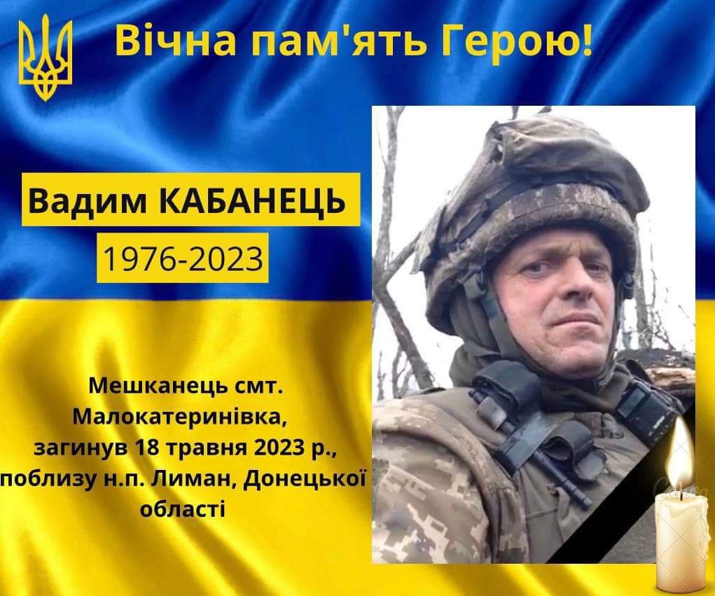18 травня внаслідок ворожого обстрілу загинув 47-річний житель Малокатеринівки. Як повідомляють у Кушугумській громаді, Вадим Кабанець загинув поблизу населеного пункту Лиман Донецької області.