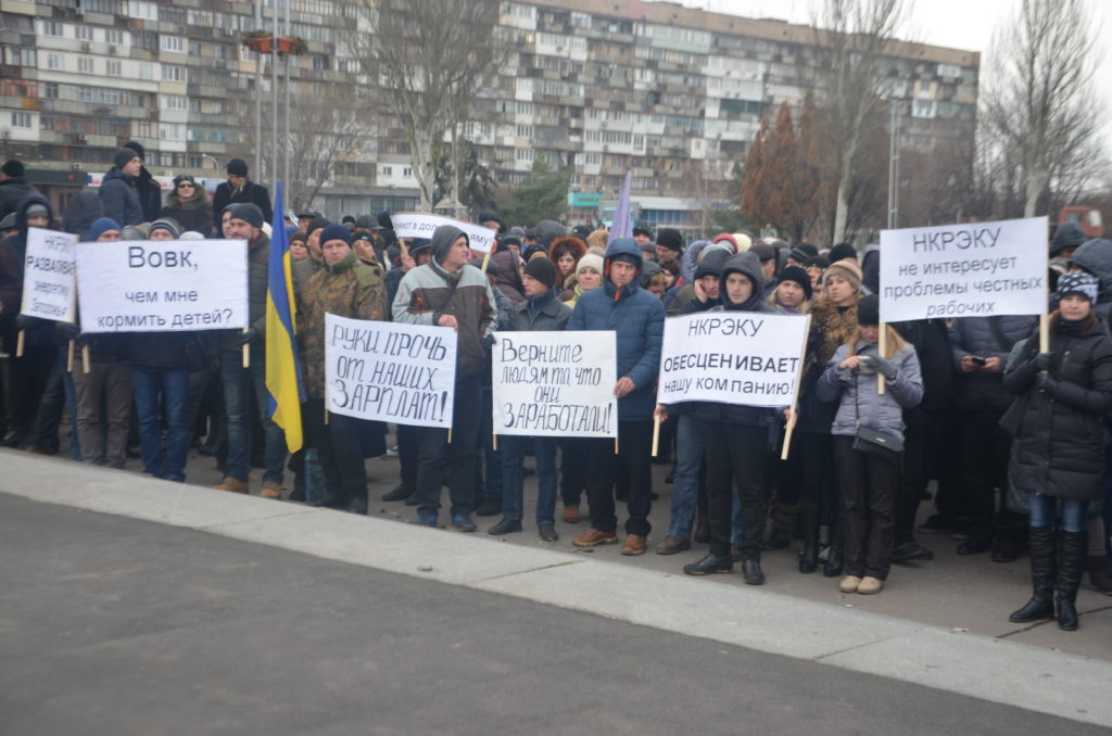 Под Запорожской ОГА вышли сотни протестующих с плакатами «Вовк, верни зарплату» и “Запорожье готовь свечи”. Митингующие хором скандируют “зарплату!”. Виновником сложившейся ситуации работники считают главу НКРЭКУ Дмитрия Вовка.