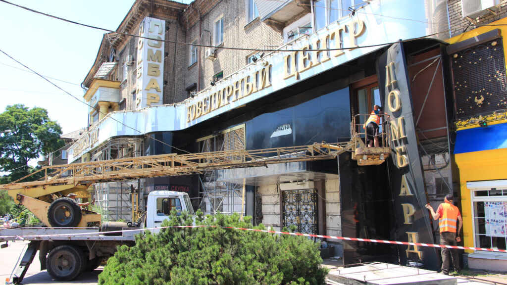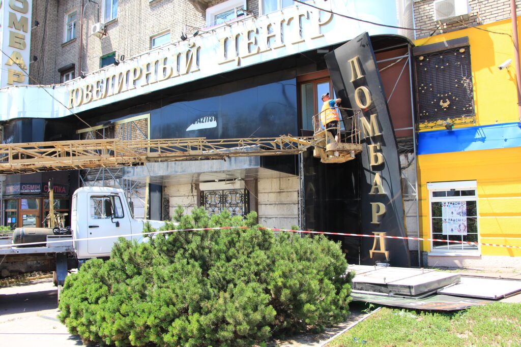 «Ще у 2021 році було прийняте рішення виконавчого комітету про демонтаж незаконно встановлених рекламних конструкцій на цьому будинку. Металеві конструкції рекламного характеру та інше було тут розміщене без жодних дозвільних документів. До роботи залучено підрядника, «Муніципальну варту» для забезпечення громадського порядку, районну адміністрацію та поліцію», — розповіла начальниця відділу управління об’єктами благоустрою департаменту муніципального управління міської ради Ольга Бондаренко.