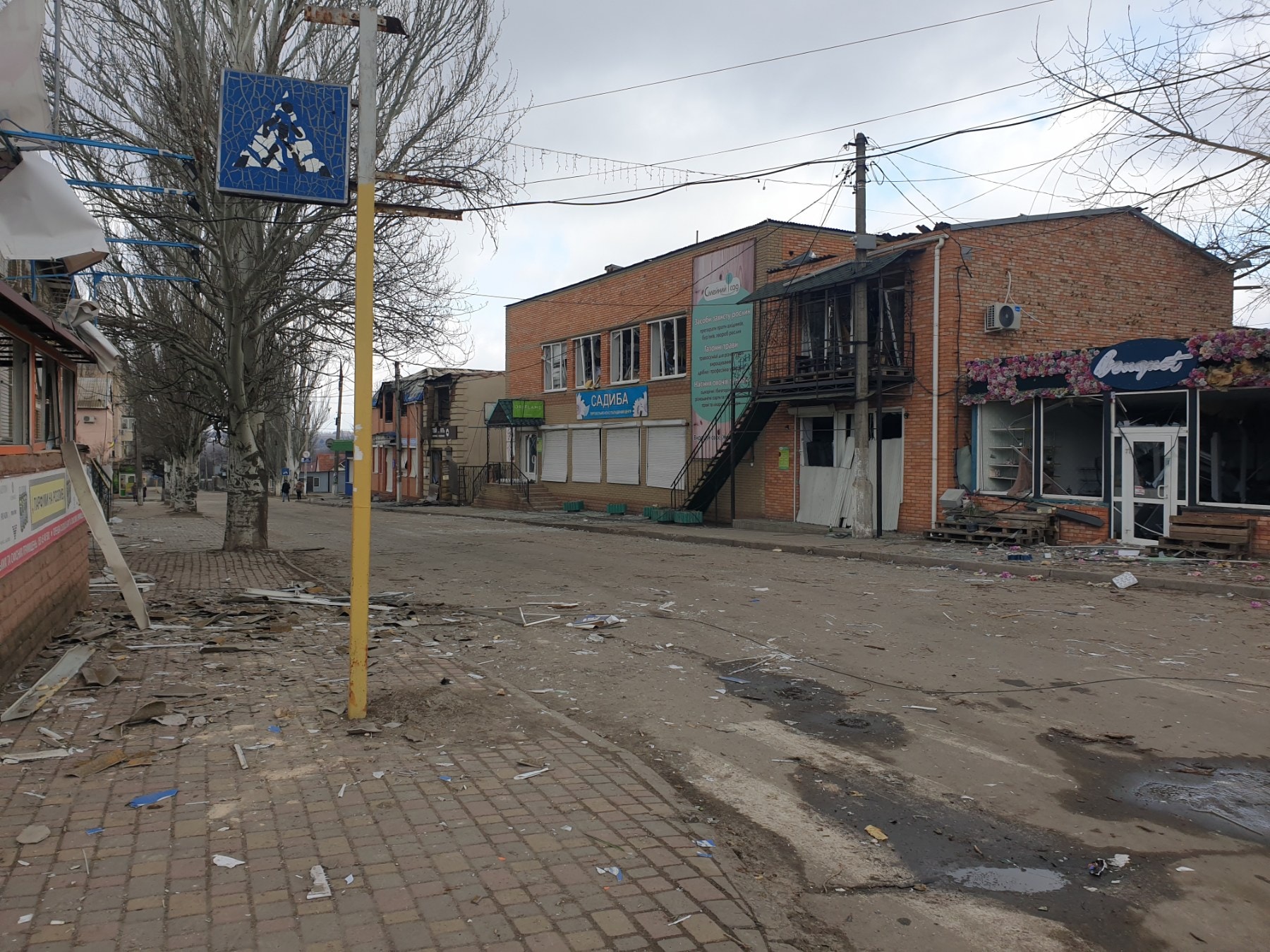 У тимчасово окупованому місті Пологи Запорізької області внаслідок бойових дій пошкоджено близько 30% інфраструктури міста. Повністю зруйнованих будівель небагато, однак ушкоджених – дуже багато.