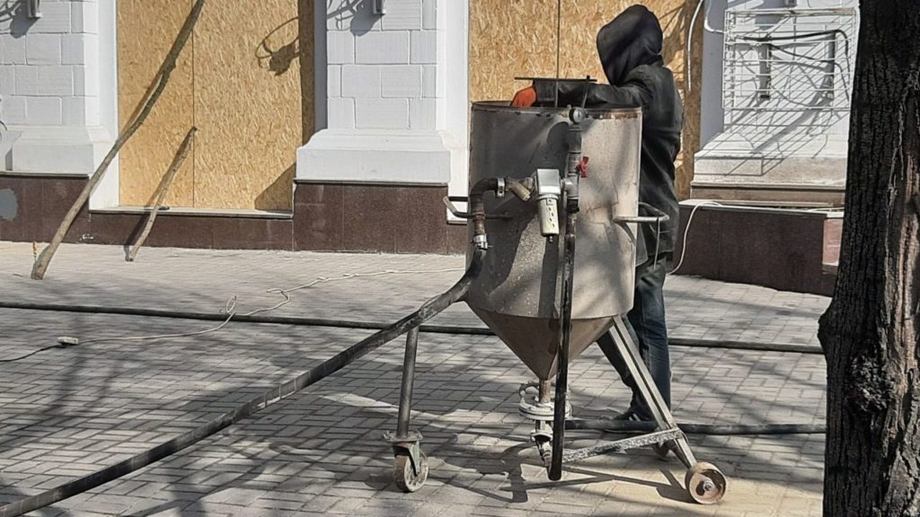 Кореспондент “Першого запорізького” зафільмував факт початку піскоструминних робіт.