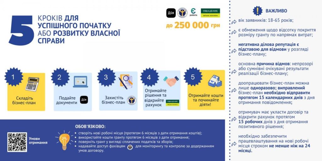 Окрема підтримка надається молоді: громадяни віком до 25 років можуть отримати до 150 тис. грн навіть без обов’язкового створення робочих місць.