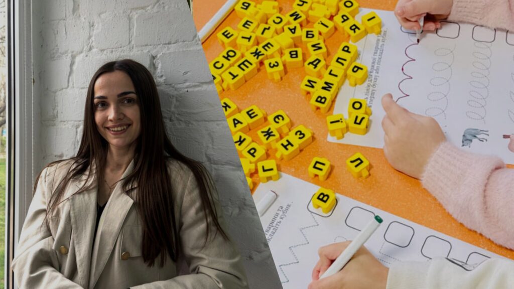 Першим виробом стали кубики з літерами, з яких діти можуть складати слова та речення. Аліна принесла їх на заняття, щоб перевірити, як вони працюють у навчальному процесі. Учні активно взаємодіяли з матеріалом – шукали потрібні літери, складали слова та використовували їх під час виконання завдань. Тоді вона переконалася, що такі інструменти роблять навчання зрозумілішим і водночас цікавішим.