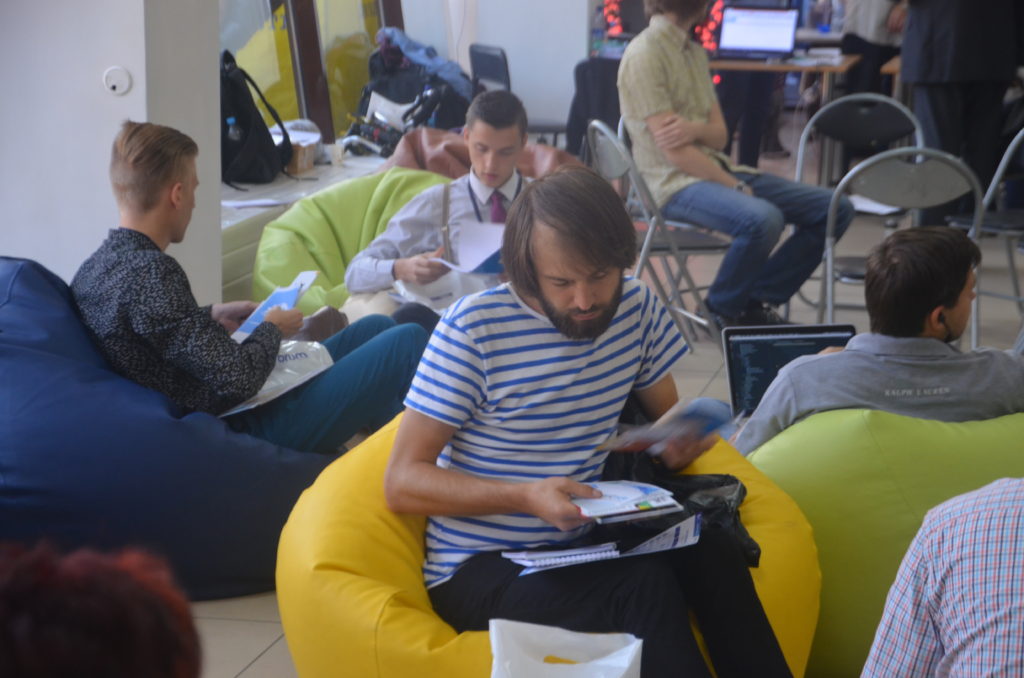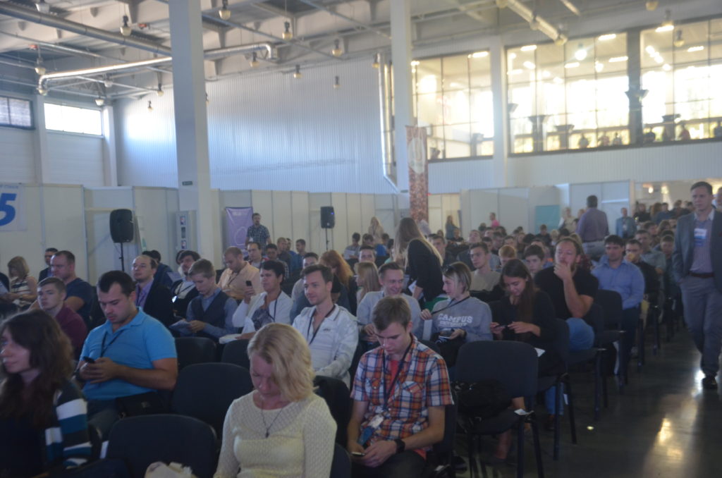 На конференции, посвященной it-технологиям, работают три зоны со спикерами. Они разделены по направлениям: it- бизнес, маркетинг и веб-технологии.