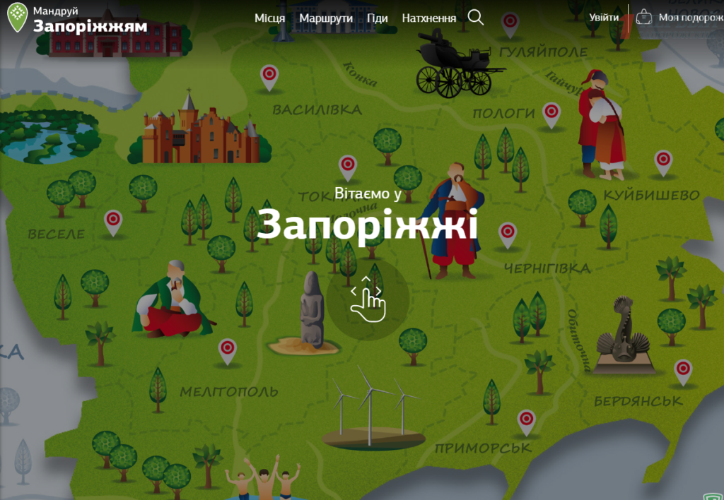 Для этих целей был создан сайт “Путешествия по Запорожской области”. С помощью простой навигации любой пользователь может увидеть информацию о самых интересных для посещения местах области.