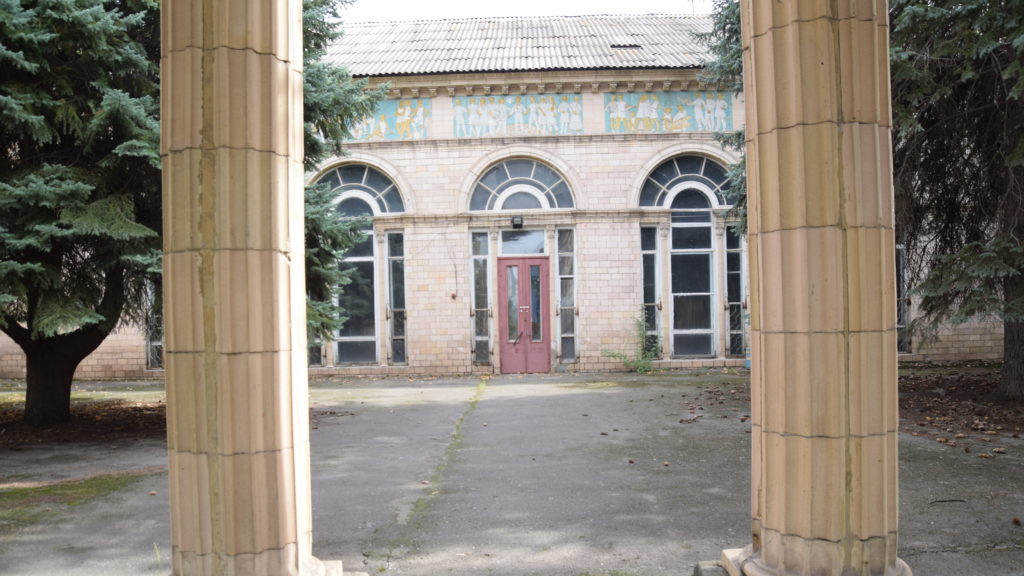 Корпуса здесь большие и просторные. На главной площади, со стороны реки Днепр, еще сохранились скамейки. Но клумб, которые были раньше, уже нет. Все вокруг заросло травой. Строения детского лагеря сохранились в прежнем виде, но закрыты. В некоторых местах заколочены окна. А от центрального строения с колоннами уже отпадает кусками крыша. Многие перила и забор уже разрушились.