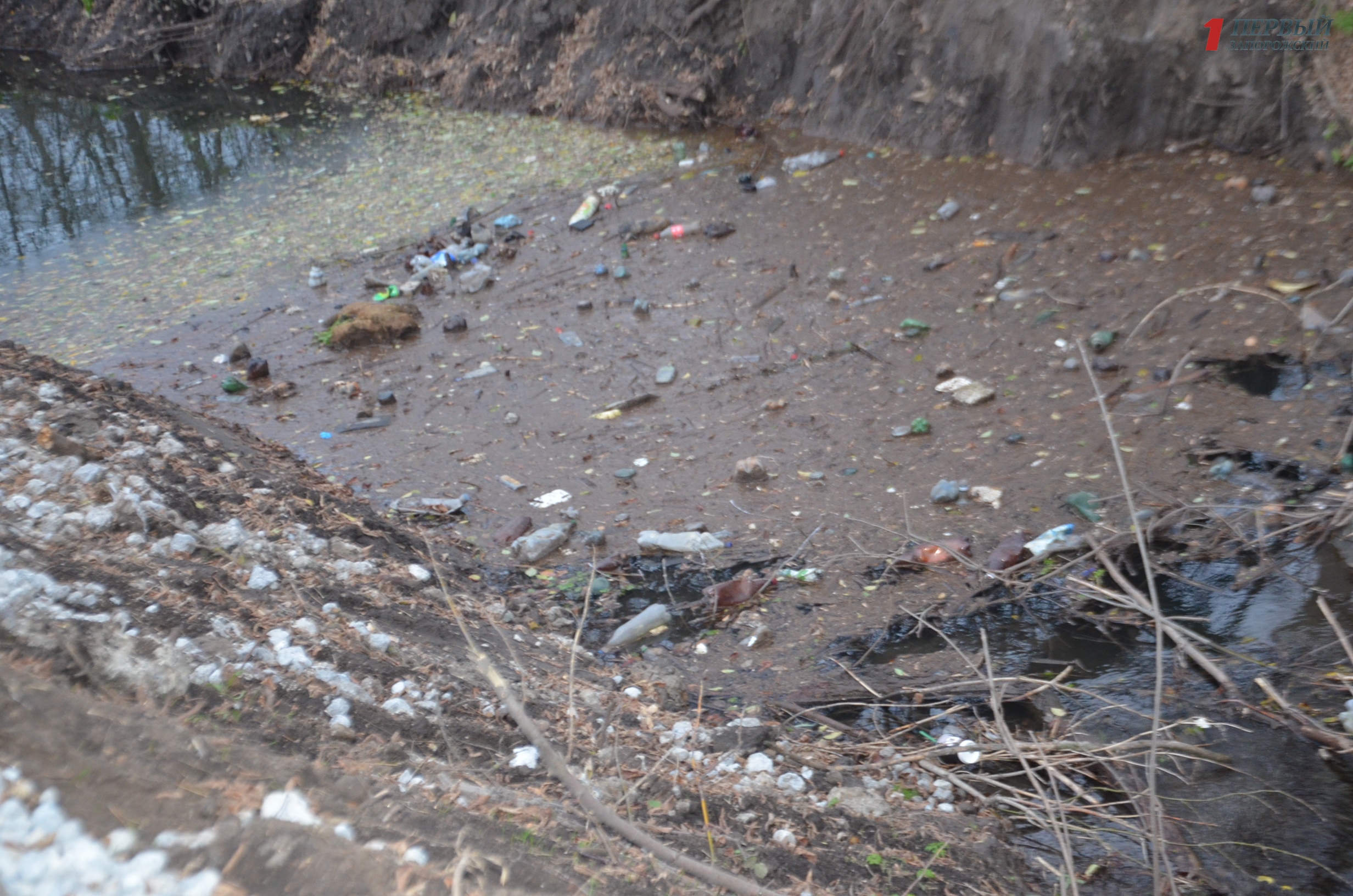 Так выглядит часть реки, где еще не начали проводить очистку. Невооруженным глазом видны иловые отложения, осадки, мусор и растительность, которые просто перекрывают реку, препятствуя природному течению.