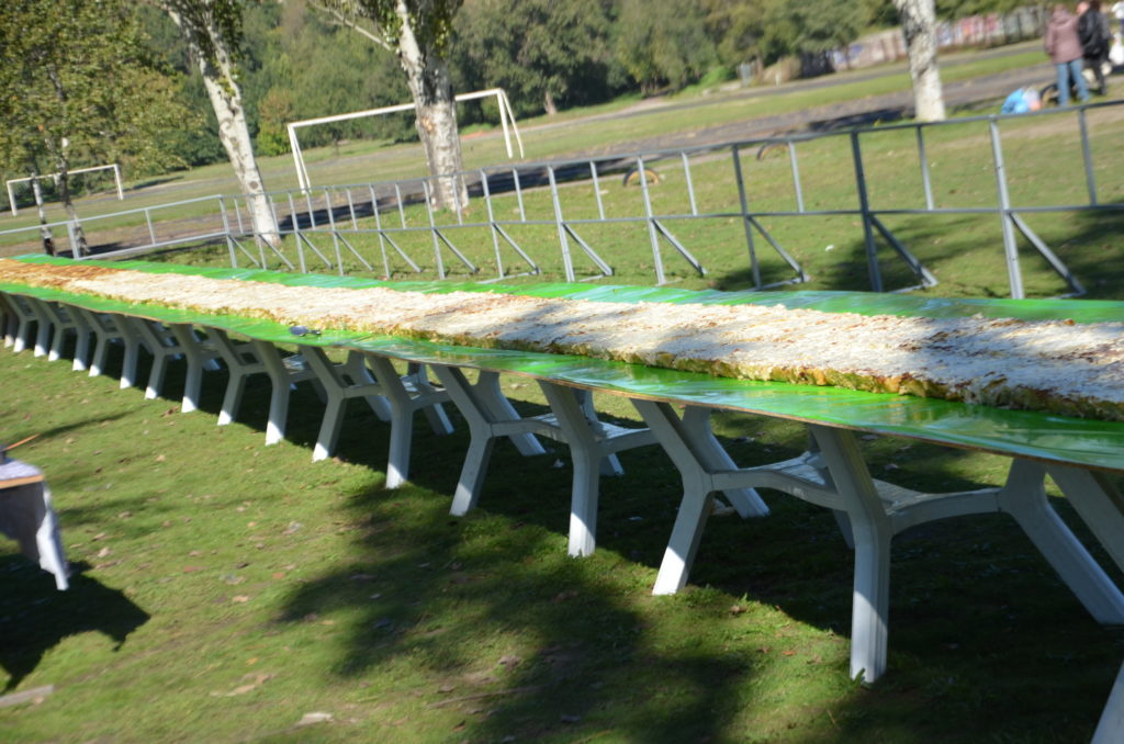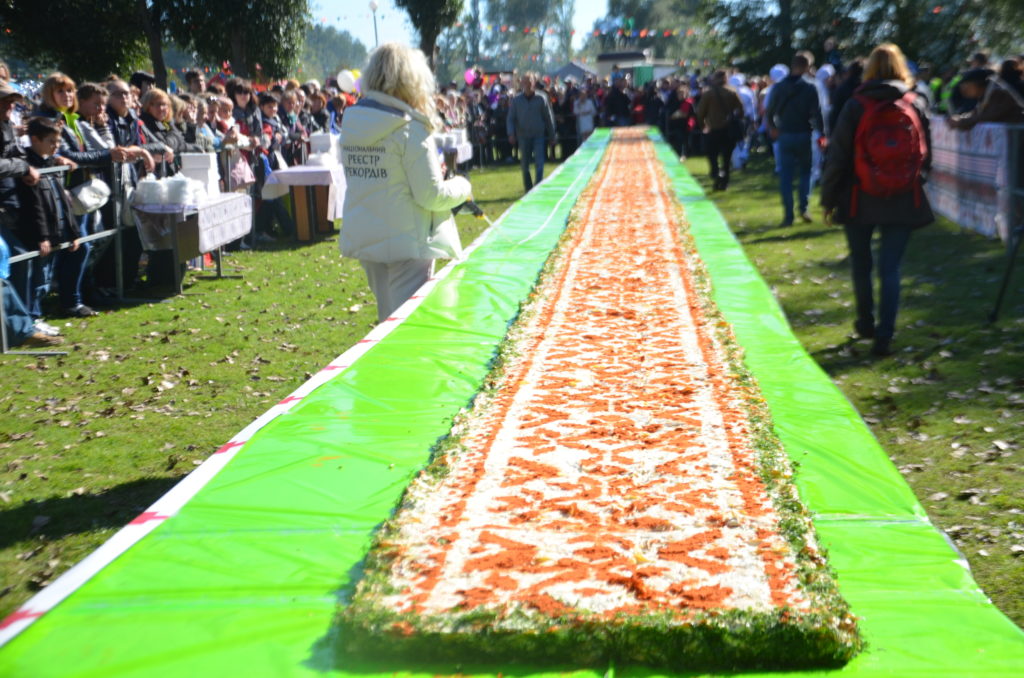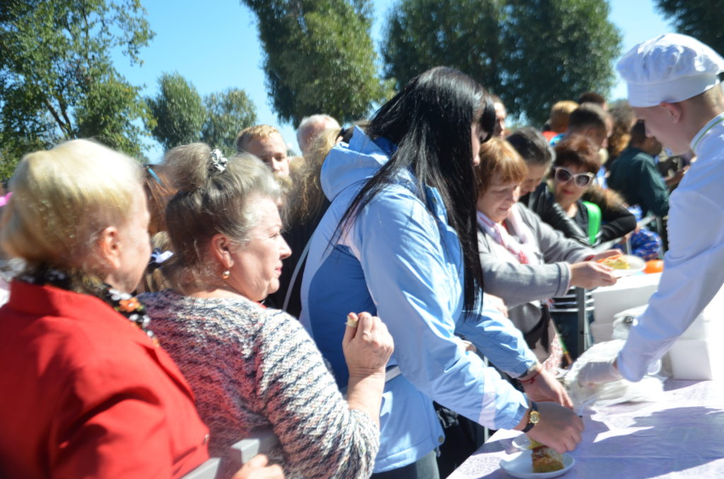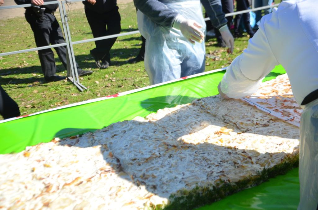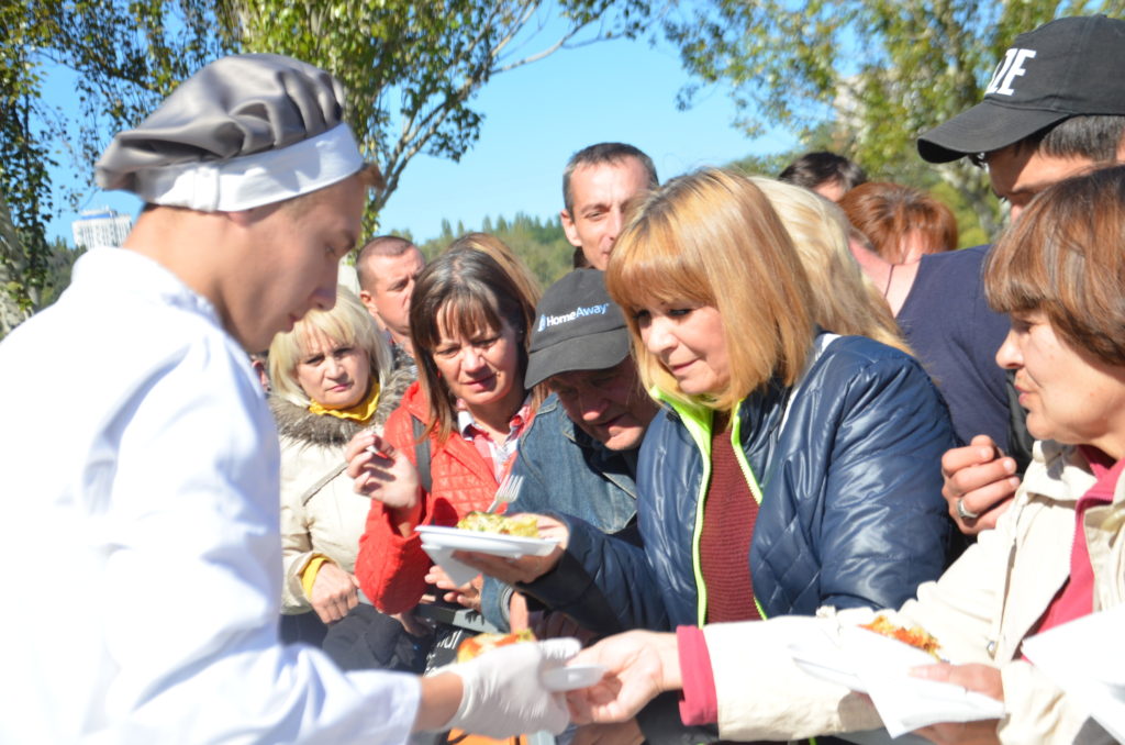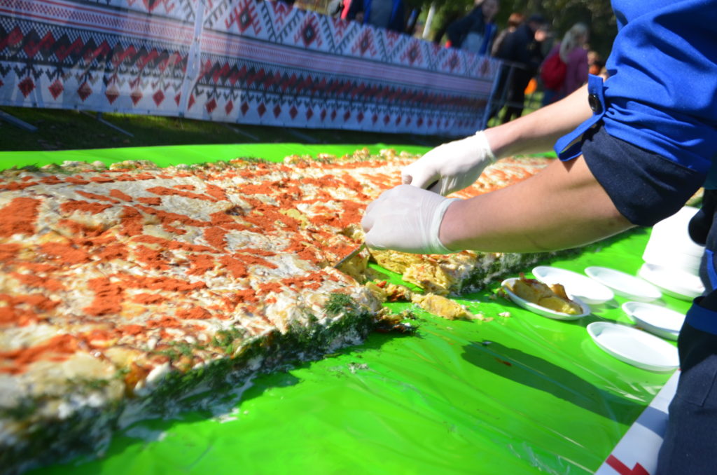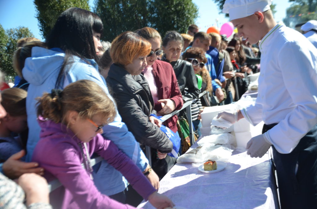 В ходе проведения ярмарки уже успели установить традиционный кулинарный рекорд по изготовлению самой длинной запеканки размером с однокомнатную квартиру – 26,6 метра в длину. Огромная толпа из пенсионеров, молодых людей и детишек собрались, чтобы бесплатно отведать угощение. На этот раз раздача прошло спокойно, без лишней давки и скандалов. Также на ярмарке работала благотворительная полевая кухня, где практически не было очередей.