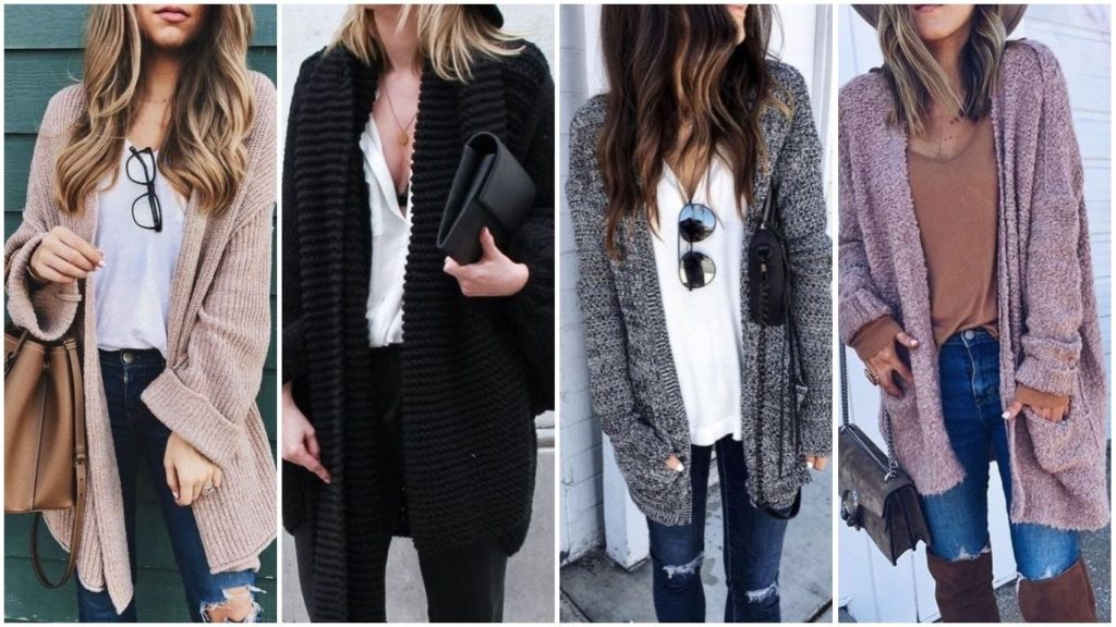 В’язані кардигани – це справжній хіт сезону. Та й багатьох попередніх сезонів теж. Велика в’язка зігріває в холоду, і такі кардигани можуть замінити навіть теплу куртку. Вони можуть бути різної довжини і фасонів, але в’язка повинна бути великою і об’ємної.