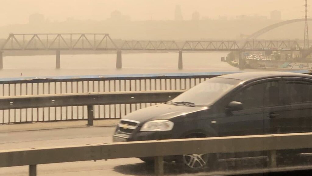 В Киеве на фоне аномальной жары в воздухе образовался смог. Причиной этого стала пылевая буря, которую с астраханских степей принес ветер. Основные загрязнения зафиксированы на Левом берегу, в районе станции метро Лукьяновская, а также на Позняках. Жители города жалуются на плохое самочувствие, затрудненное дыхание, плохую видимость и песок на зубах.