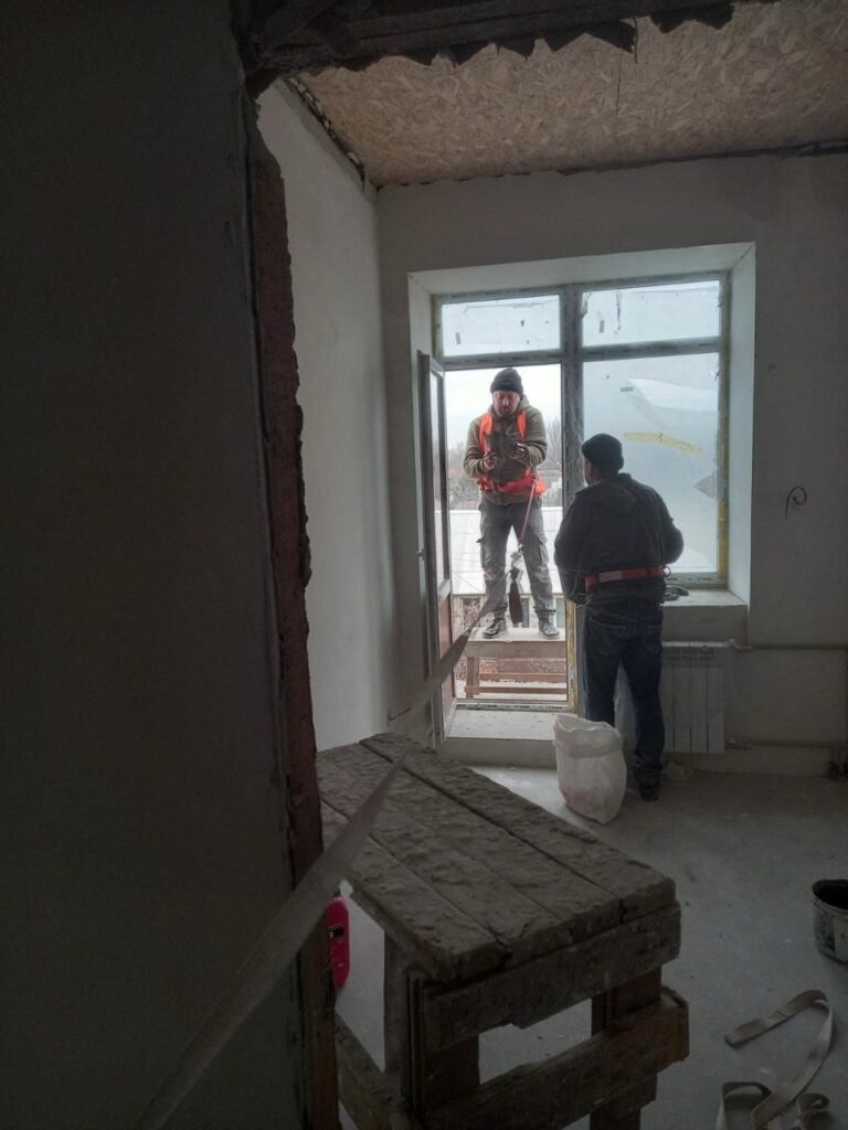 «З понеділка підрядники продовжить працювати у квартирах, виконуватиме внутрішні роботи у найпростішому укритті будинку та у приміщенні ЦНАПу», — уточнюють у міській раді.