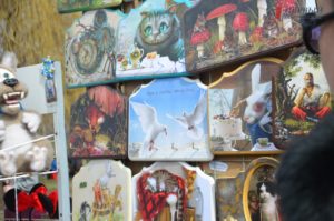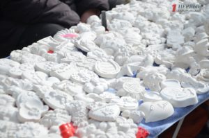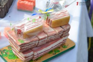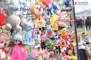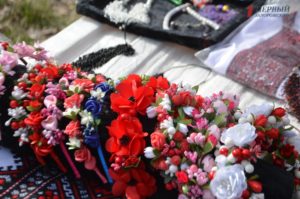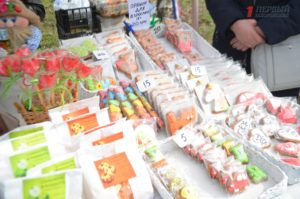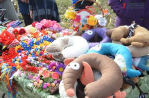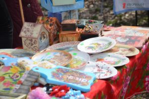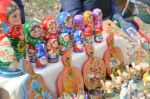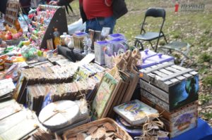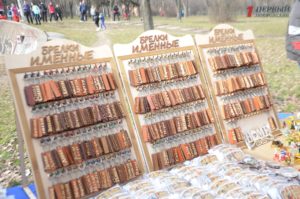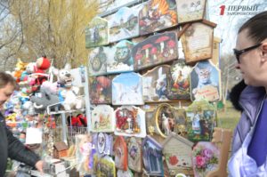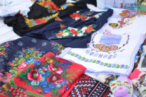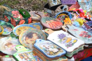 В конце парка ближе к Победе разместилась ярмарка народных товаров. Гости могли здесь прикупить вышиванки; аксессуары – венки, сумки, украшения; изделия из дерева, картины, керамику, сувениры, куклы-мотанки, мыло ручной работы и многое другое.