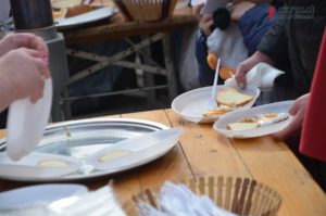 Несколько сотен запорожцев целыми семьями заглянули на празднество. Здесь можно было отведать различные угощения – блины с начинками и без с теста разного цвета, жареные яйца, дывни из теста, пряники, леденцы и многое другое.