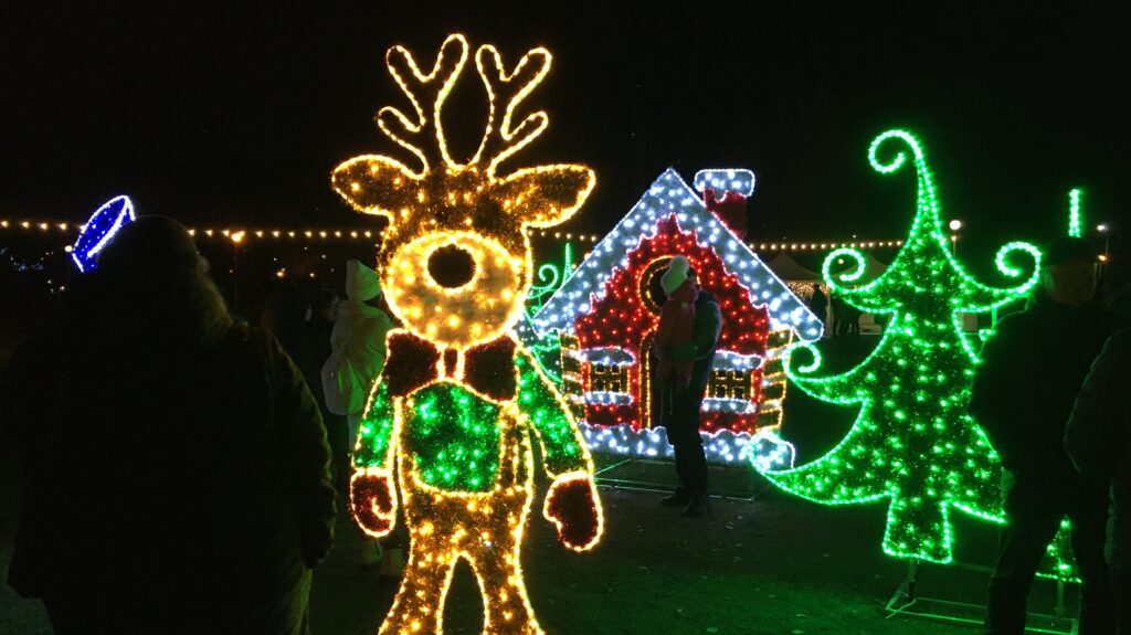 На территории новогоднего городка работают фудкорты с едой и напитками. Например, большой стакан попкорна обойдется в 70 гривен, маленький – 50 гривен. Цена классического глинтвейна 50 гривен – маленький, 60 – средний, 70 – большой.